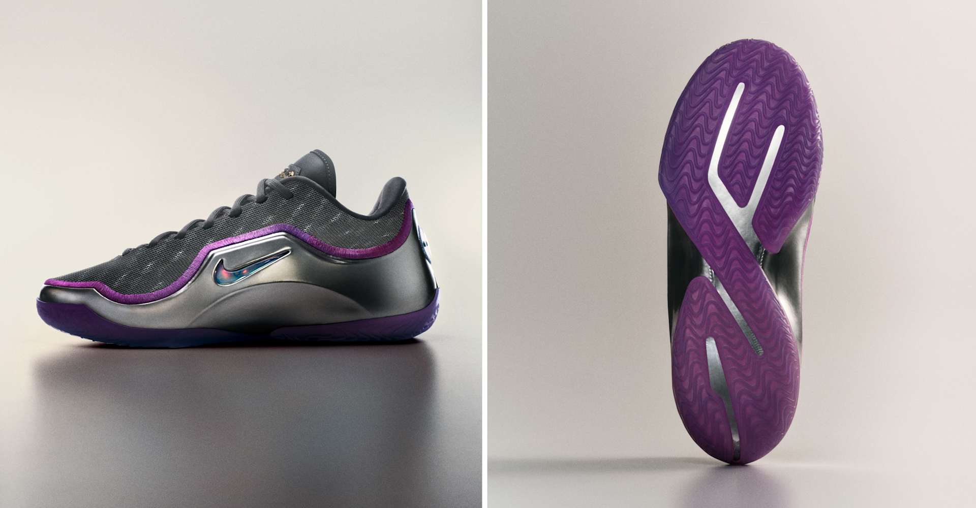 버블 시즌의 상황을 생각하면 르브론이 2020년에 따낸 타이틀은 네 번의 우승 중 가장 힘들게 얻어낸 것일 겁니다. 하지만 르브론은 자신만이 할 수 있는 방식으로 팀을 이끌어 결국 또 하나의 왕관을 획득했죠. 무지개빛이 도는 실버 갑피는 실제로 둥근 버블의 표면을 연상하게 합니다. 두 스우시 로고 모두 보석으로 장식되어 있으며, 이는 고된 노력으로 얻은 4번째 반지를 기념하는 것입니다. 르브론이 17번째 챔피언십 우승으로 이끈 프랜차이즈에 바치는 오마주 표시로 퍼플 색상이 들어갔습니다.