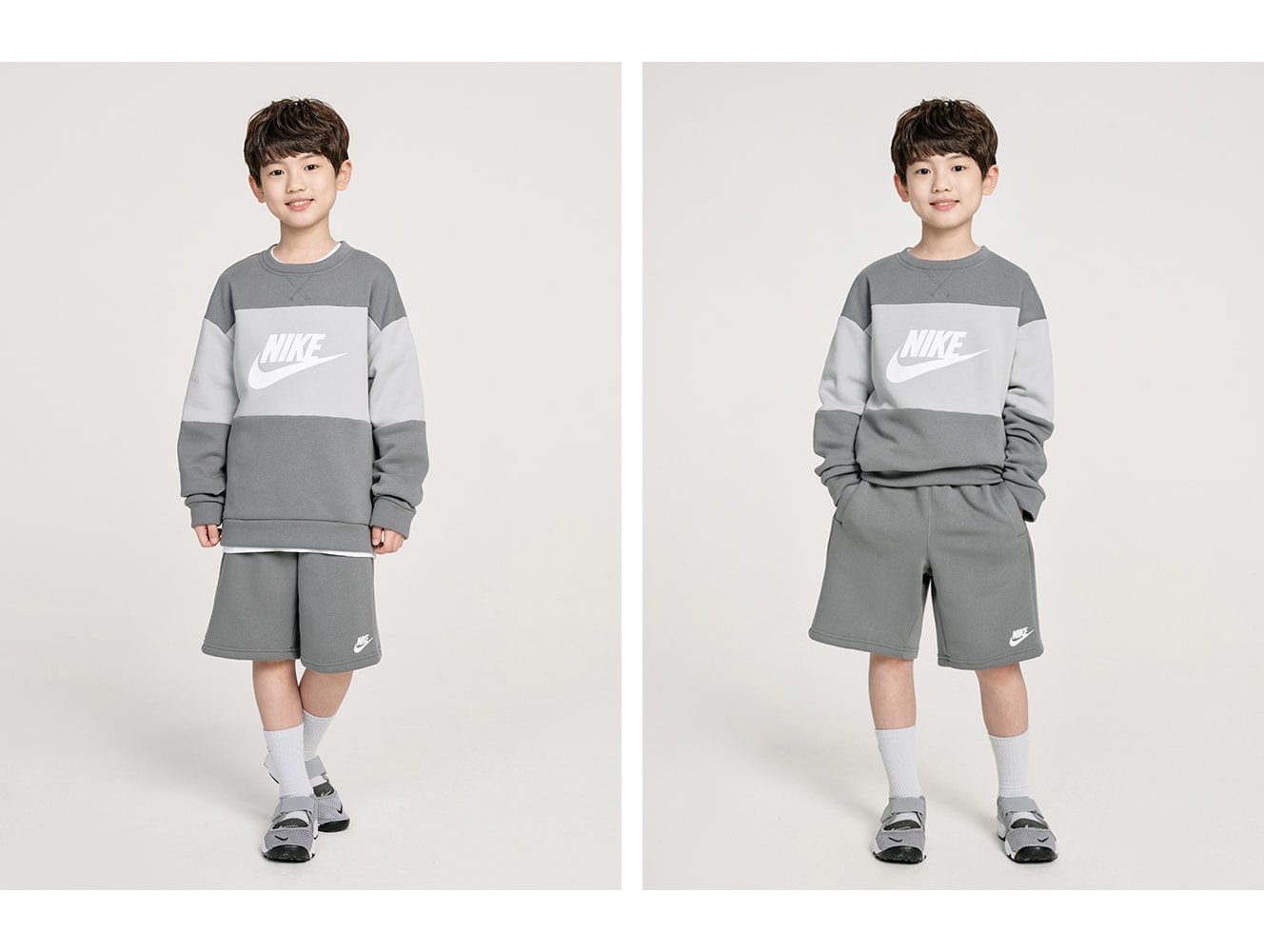남자 모델 키 : 134cm 착용 사이즈 : 230mm착용 제품 : 나이키 스포츠웨어 프렌치 테리 트랙수트