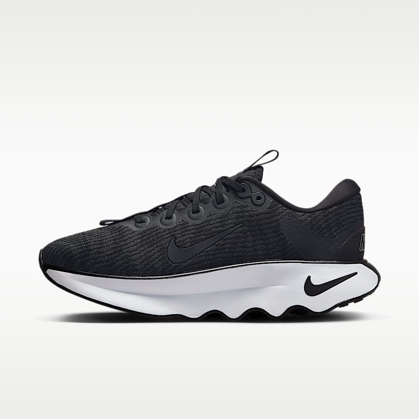 최상의 편안함을 느끼며 걸을 수 있도록 디자인된 나이키 모티바는 나이키에서 가장 뛰어난 쿠셔닝을 제공합니다. 높은 폼 스택이 밑창의 혁신적인 컴포트그루브 기술과 어우러져 걷는 도중에 발생하는 충격을 흡수해 줍니다. 과감한 디자인의 로커가 발걸음에 추진력을 더해줍니다.
