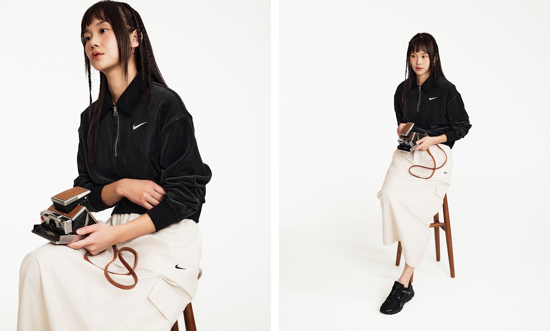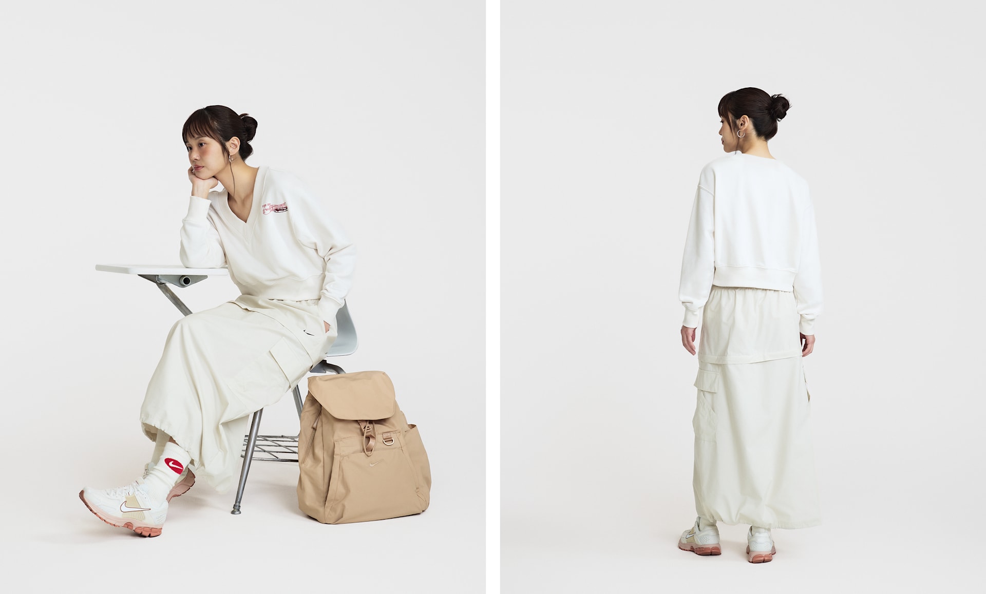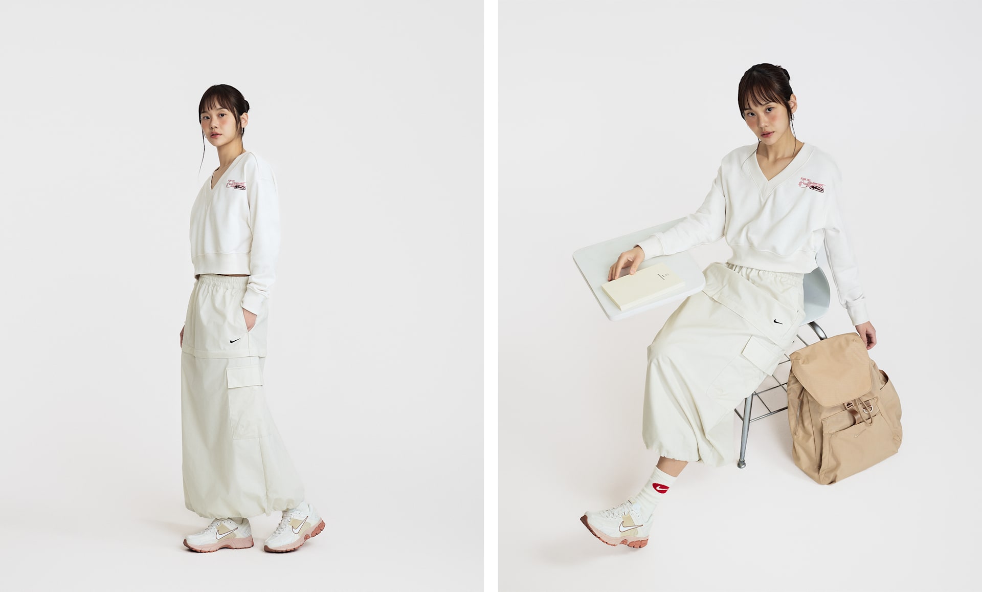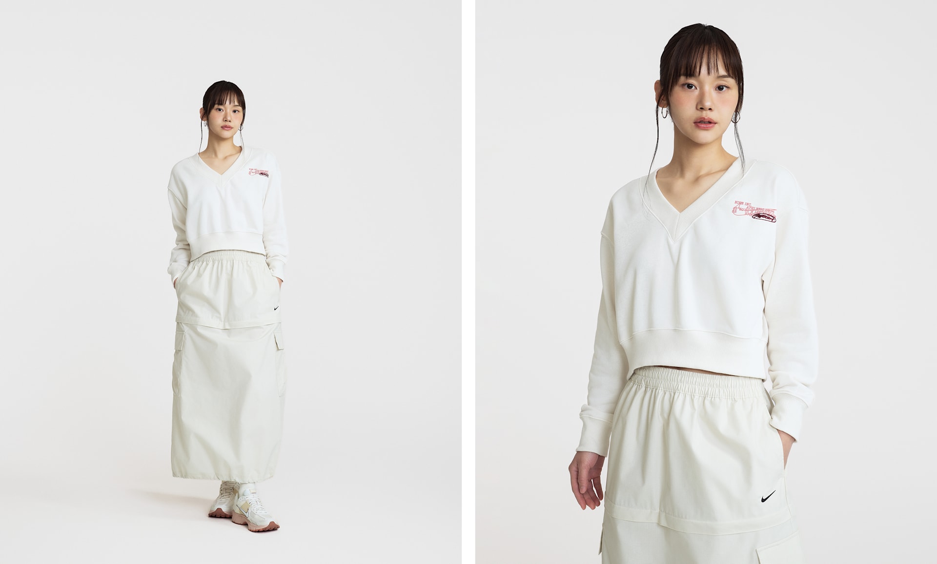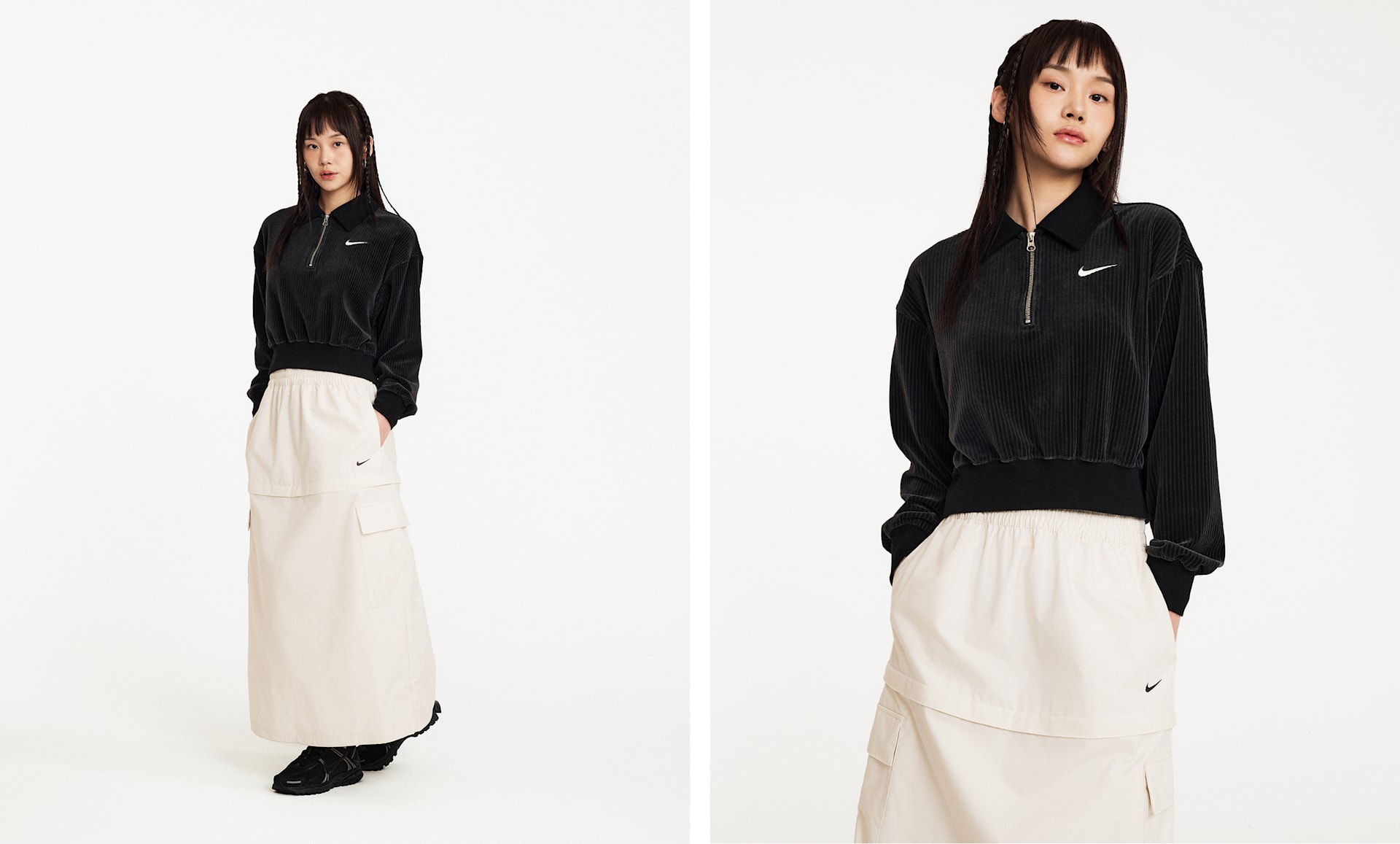 여자 모델 키 : 168cm 착용 사이즈 : S 착용 제품 : HV5031-010, HF1553-001