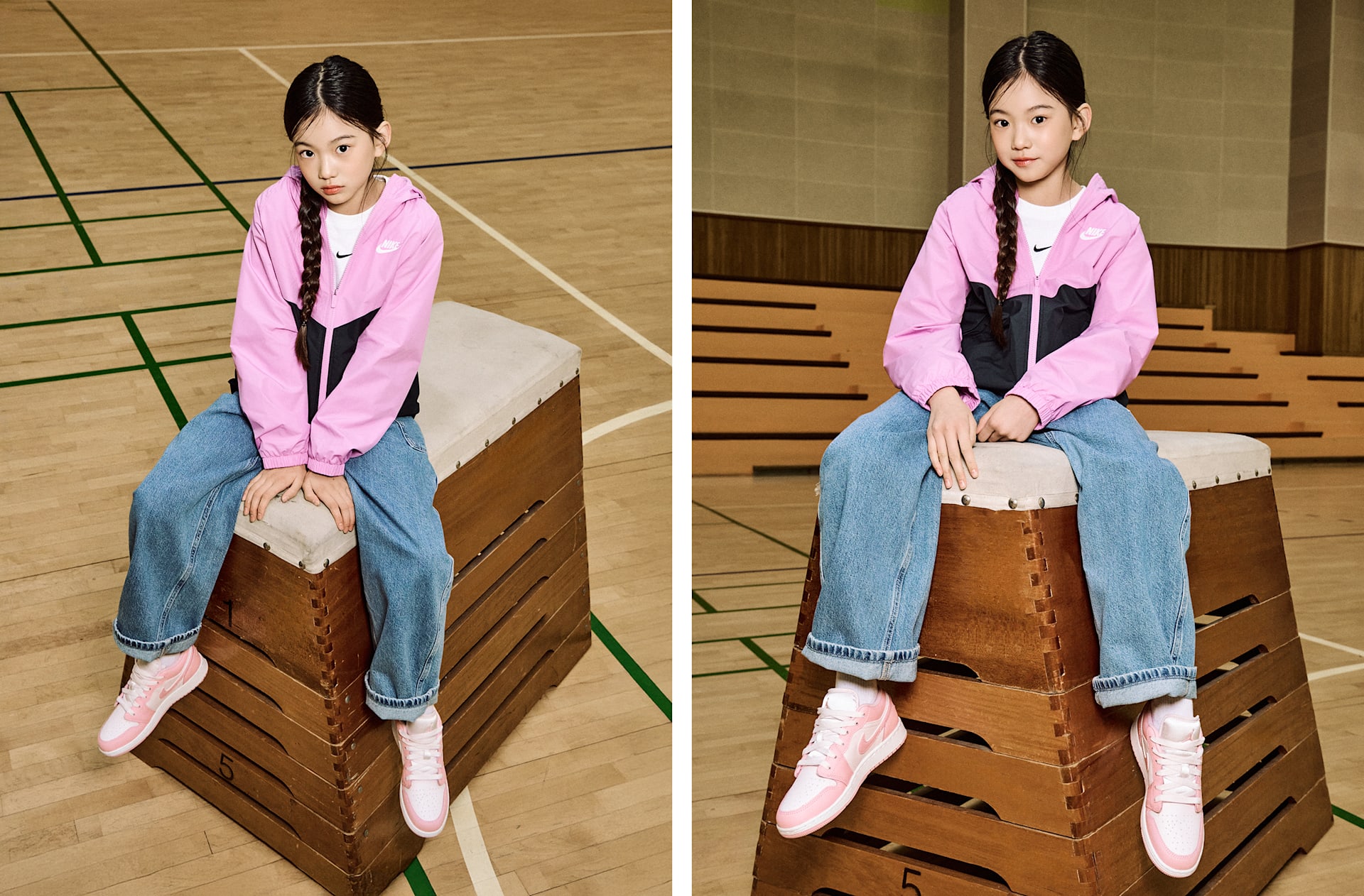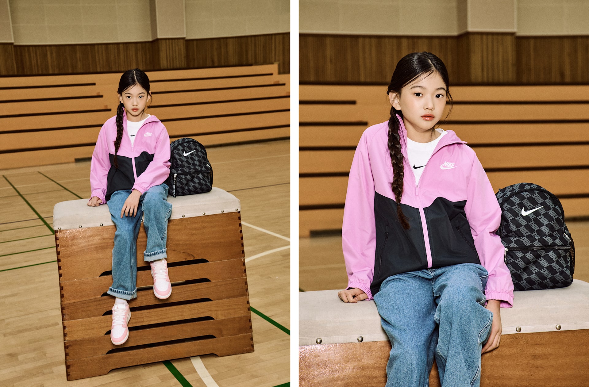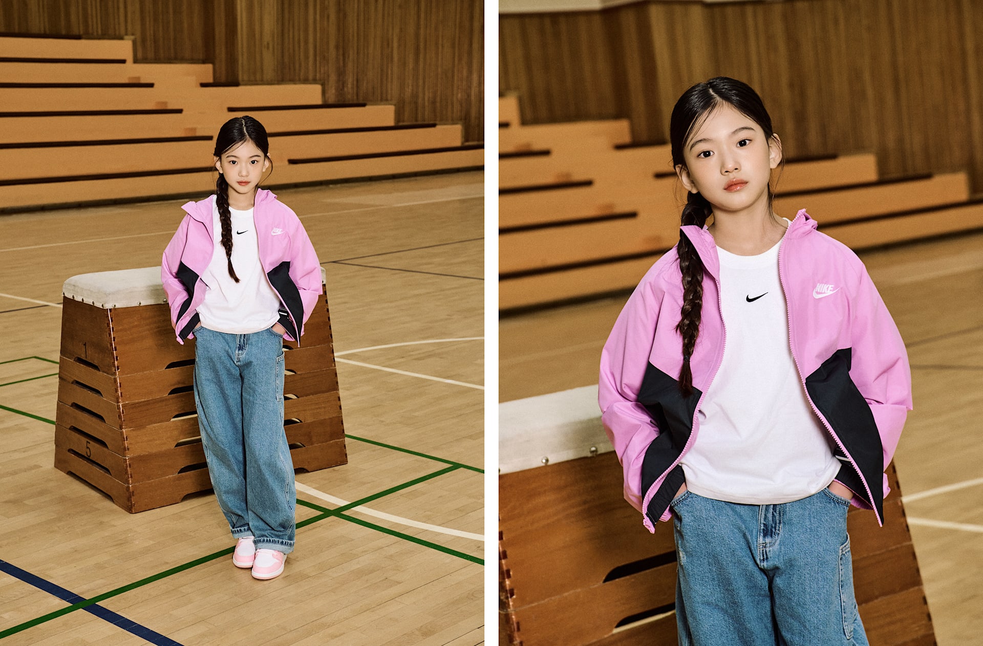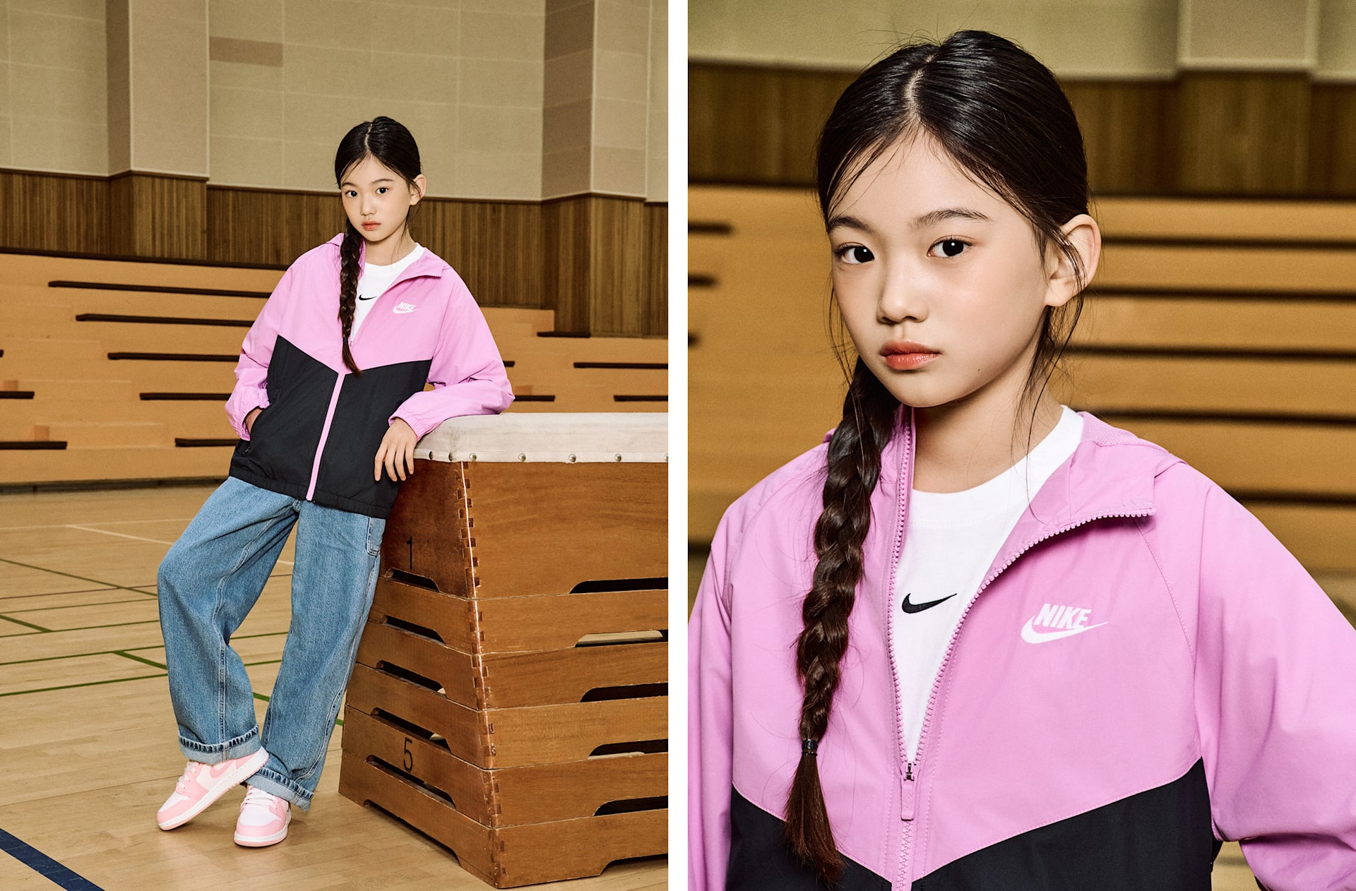 여자 모델 키 : 138cm 착용 사이즈 : M 착용 제품 : IF2821-503, 553560-614