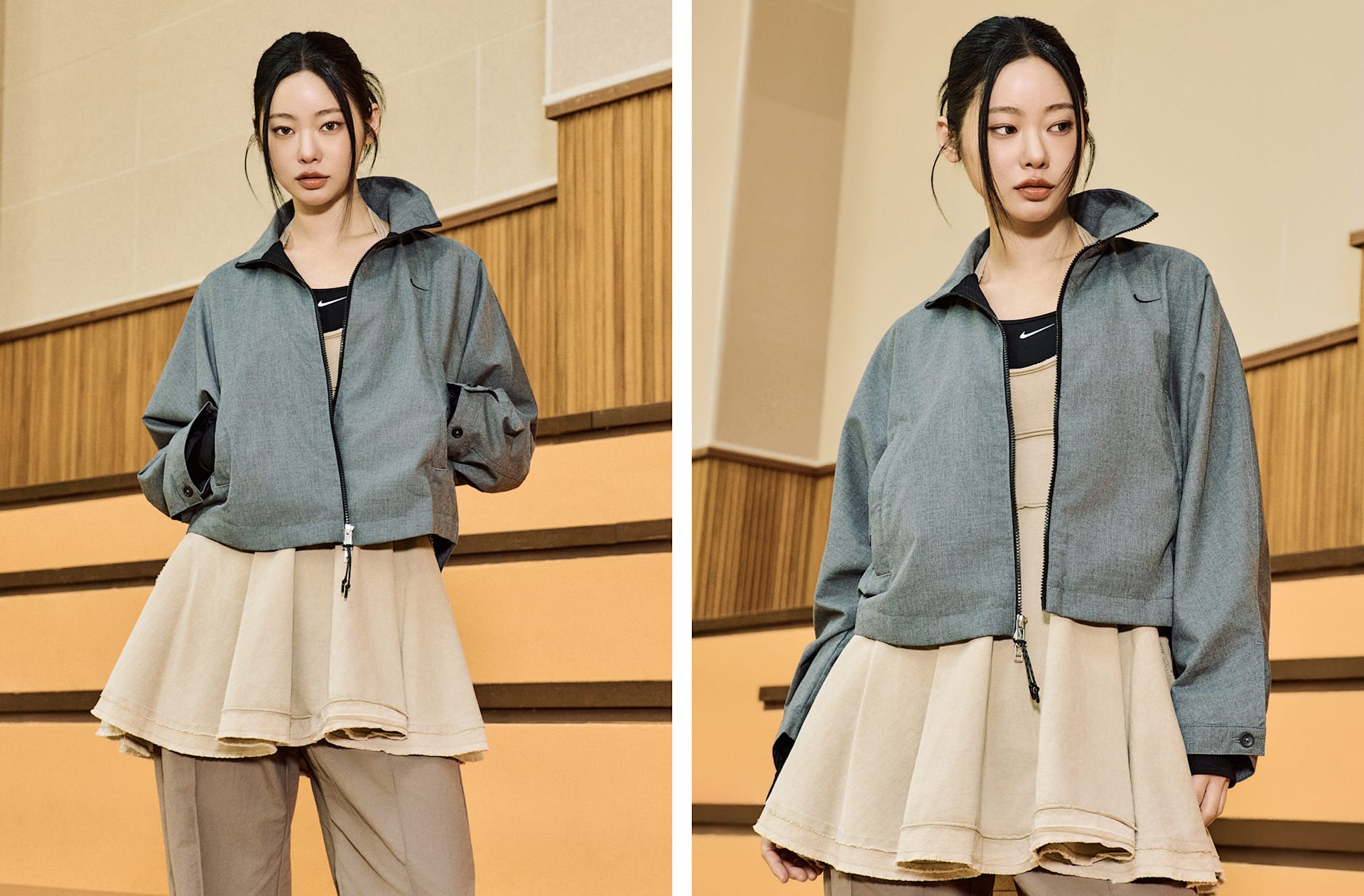 프리미엄 소재와 의도적인 디테일이 이 트윌 재킷의 세련된 룩을 완성합니다. 골반까지 내려오는 넉넉한 핏으로 박시한 룩을 연출합니다. 양방향 지퍼로 스타일과 커버력을 조절할 수 있습니다.
