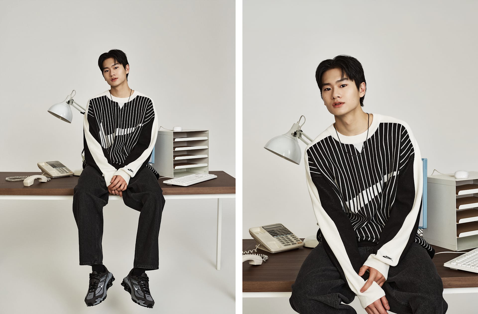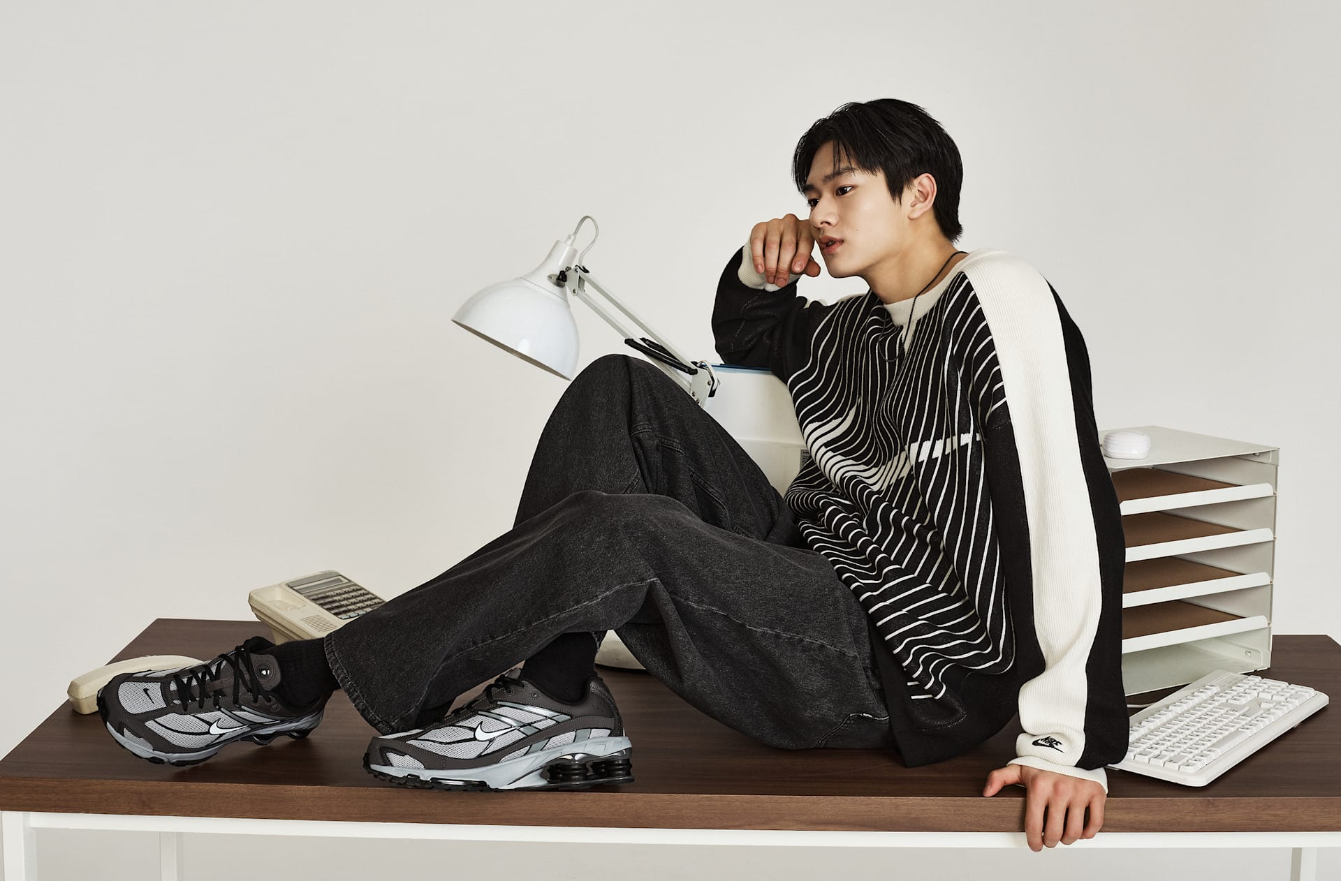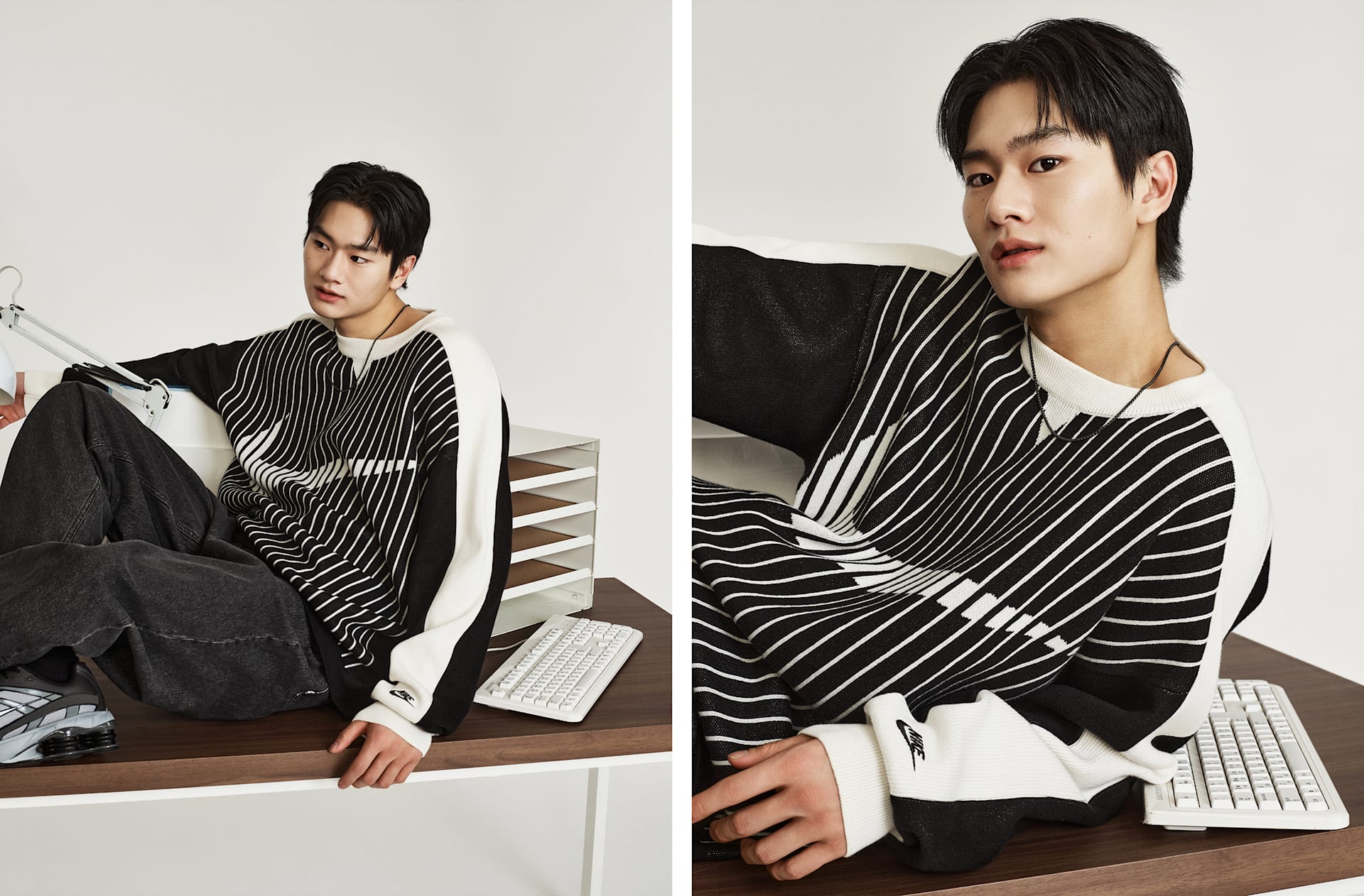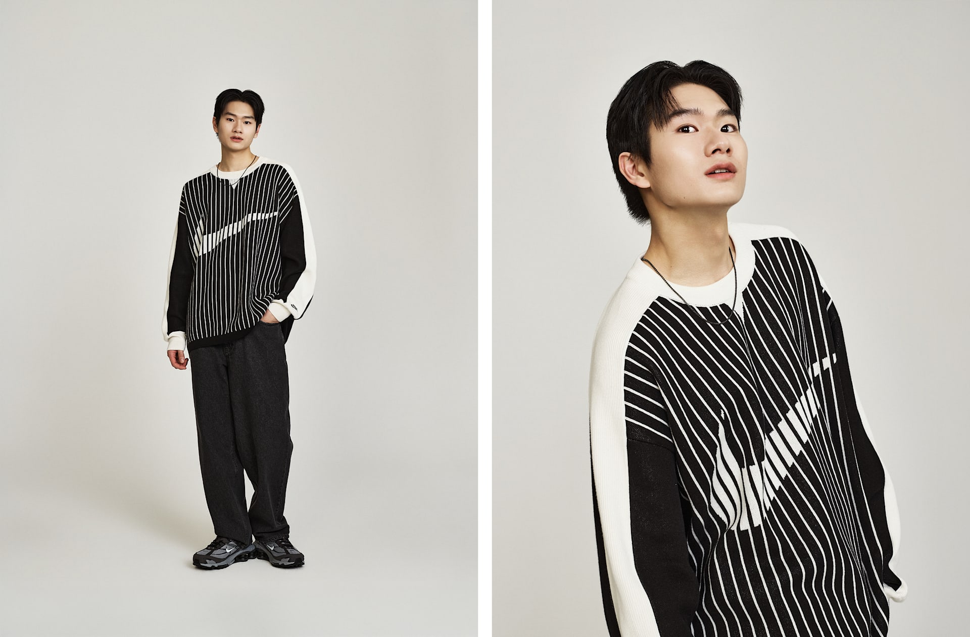 자카드 소재의 스우시 로고가 이 클래식한 플랫 니트 스웨터에 스포츠에서 영감을 받은 스타일을 더합니다. 넉넉한 핏이 캐주얼한 룩을 연출하며 레이어링하기에 좋습니다.