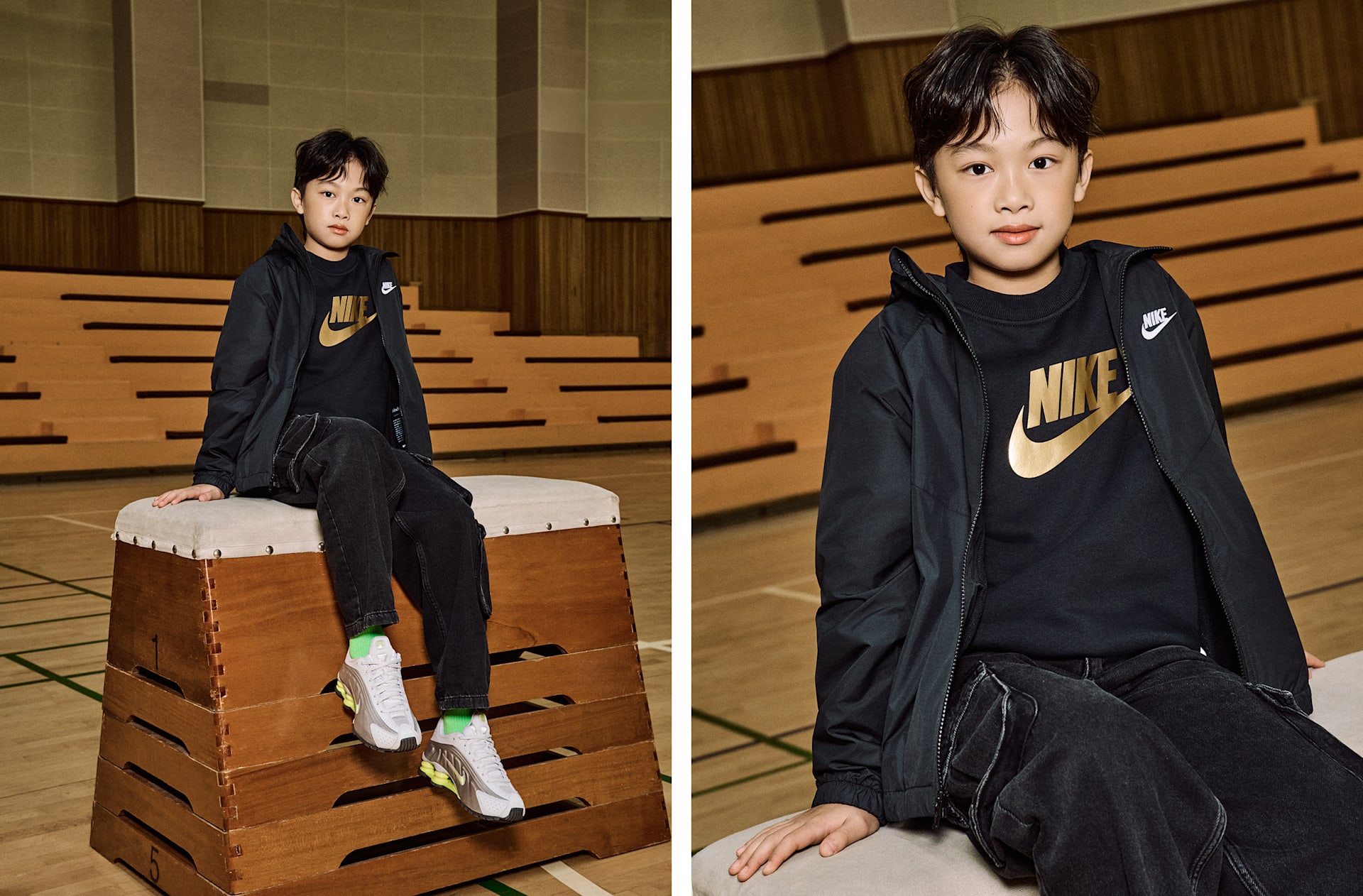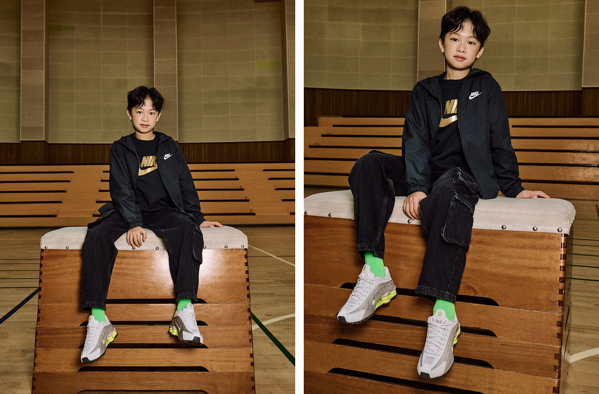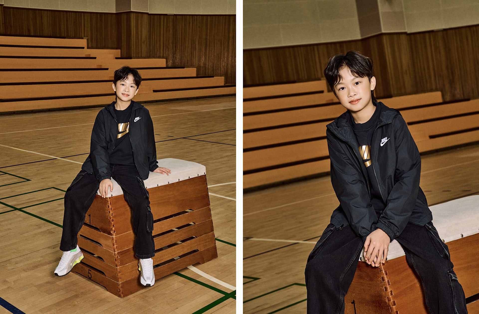 남자 모델 키 : 144cm 착용 사이즈 : M 착용 제품 : IF2821-010, CW2626-008