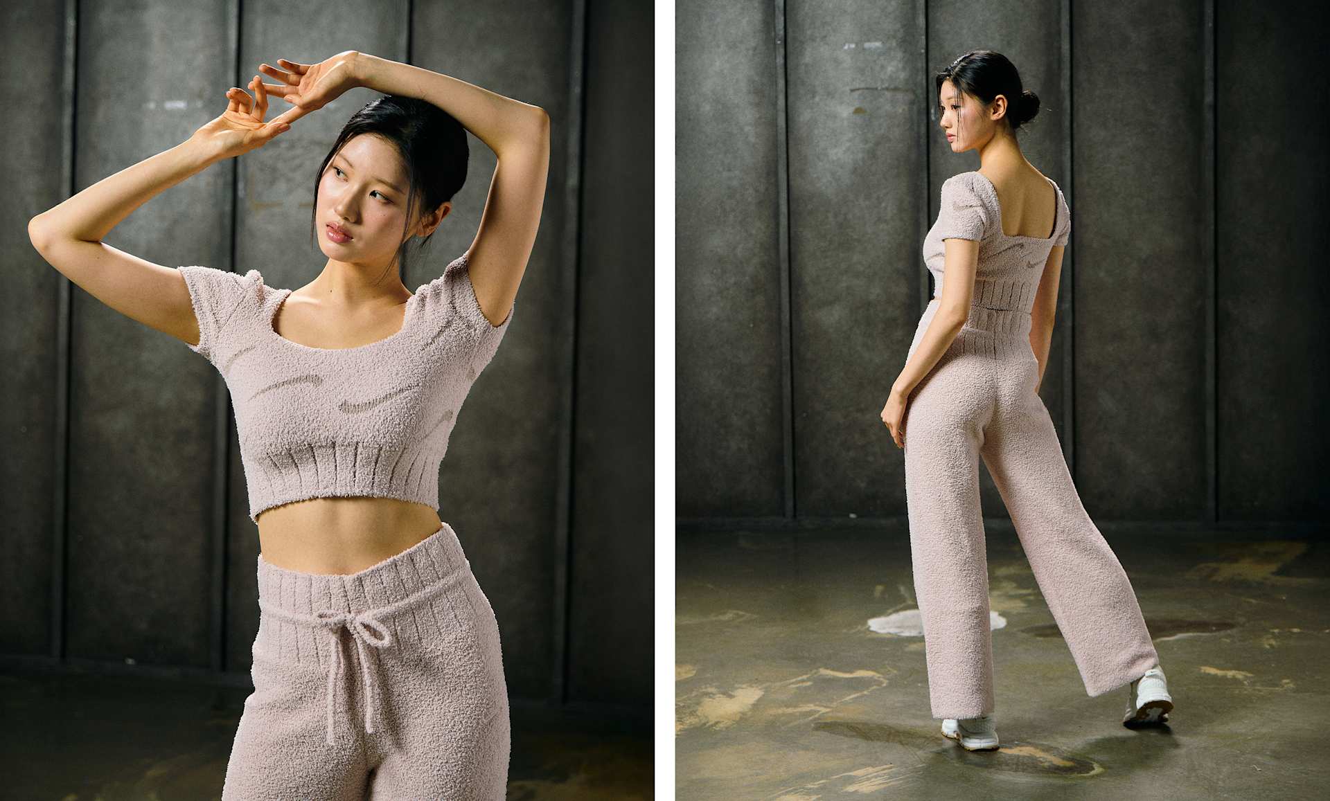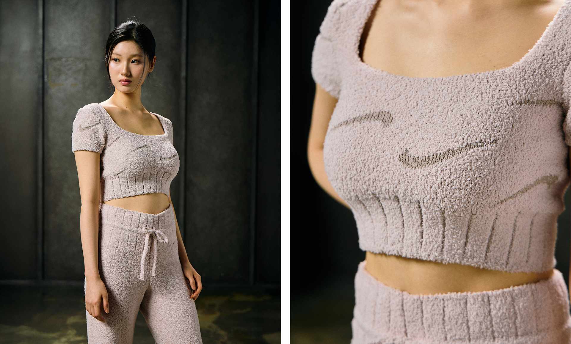 무게감 있는 부클레 소재로 디자인된 이 크롭 탑은 푹신하고 고급스러운 느낌을 선사해 온종일 함께할 수 있습니다.