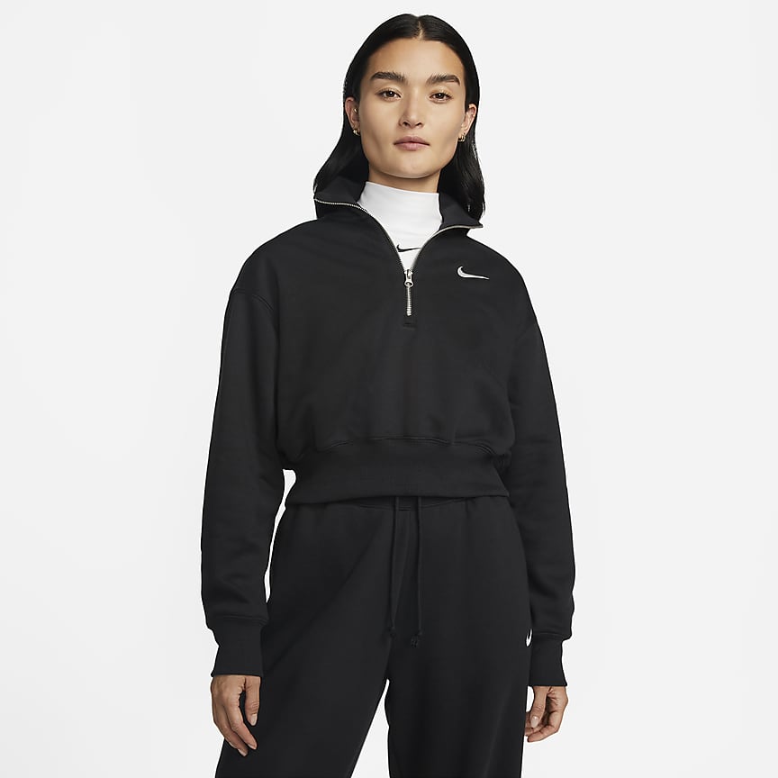 나이키 스포츠웨어 피닉스 플리스 여성 오버사이즈 하프집 크롭 스웻셔츠 - 세일/블랙