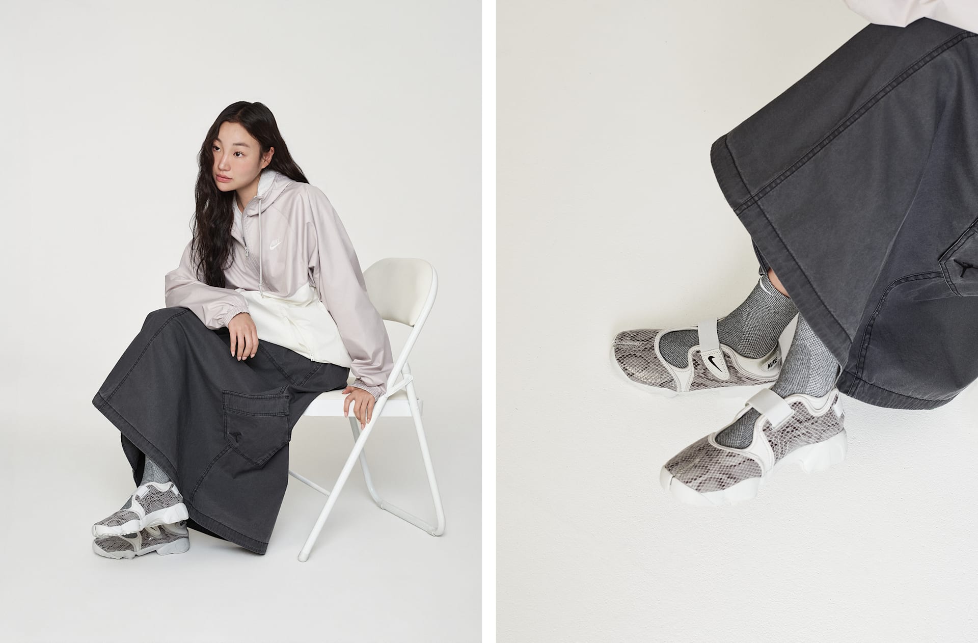 맨발로 다니고 싶지만 어쩔 수 없이 신발을 신어야 한다면 에어 리프트를 선택하세요. 1996년 오리지널 제품을 바탕으로 스플릿 토 디자인을 적용한 아이템으로, 조절 가능한 스트랩이 있어 쉽게 신을 수 있습니다. 뒤꿈치에 에어 쿠셔닝을 더해 아무것도 신지 않은 듯한 느낌이 듭니다.