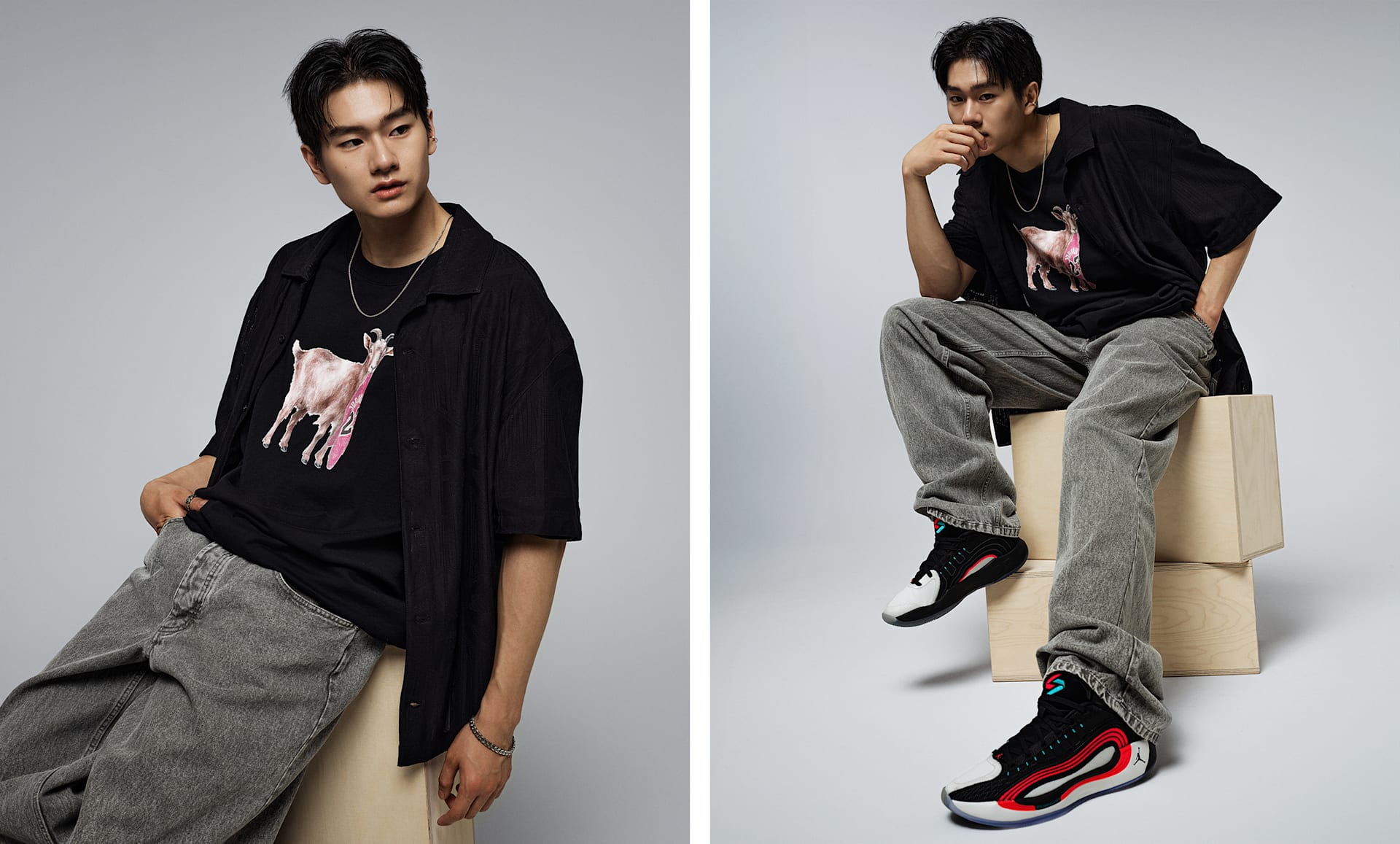 - 내구성 좋고 무게감 있는 데님이 구조적인 룩과 느낌 선사