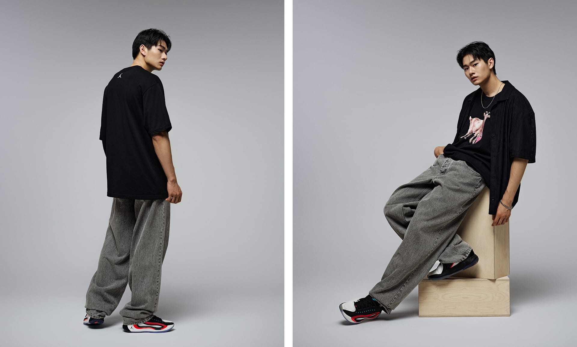 남자 모델 키 : 186cm 착용 사이즈 : 32 착용 제품 : HJ2966-010, CW2288-111