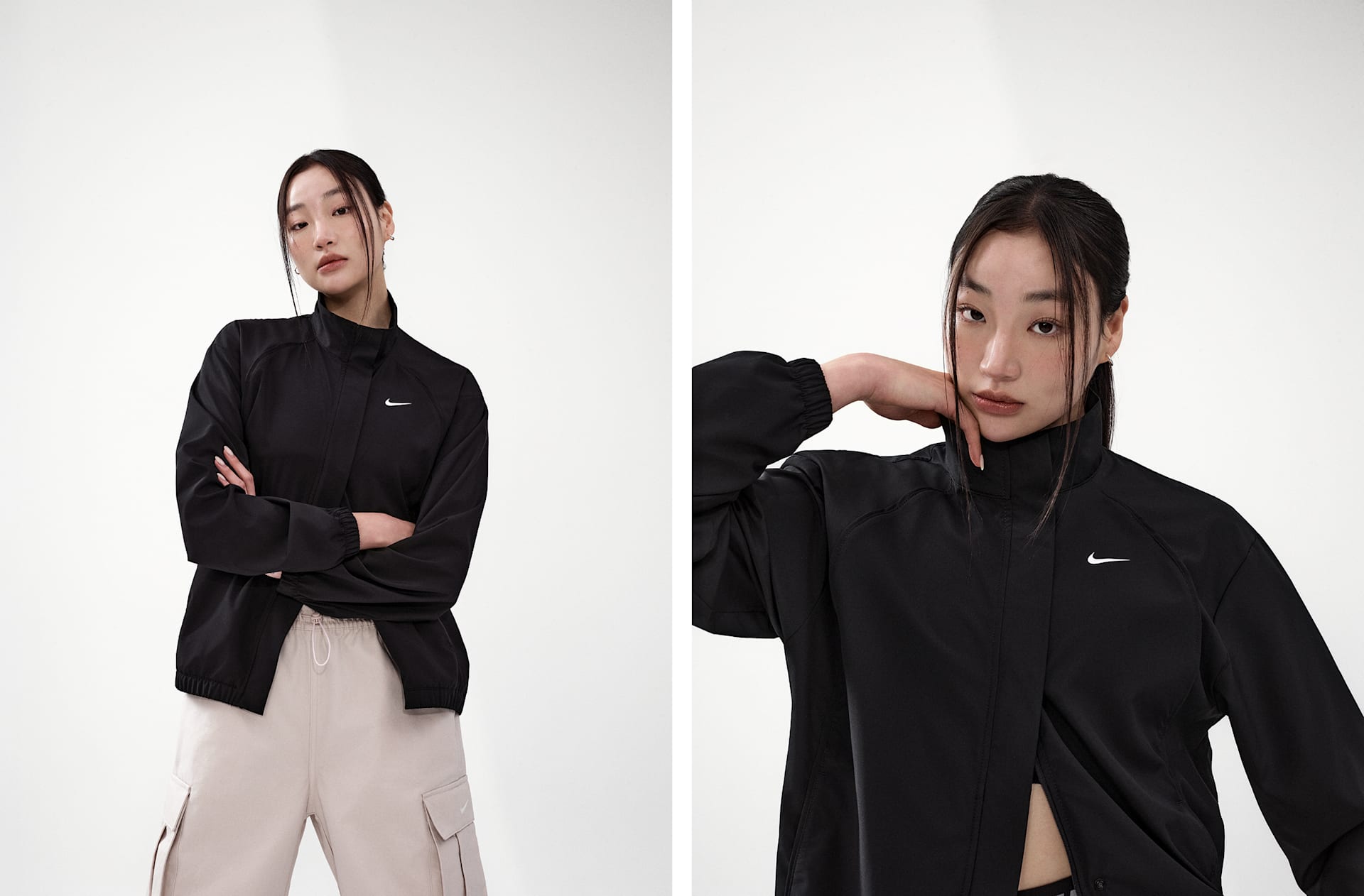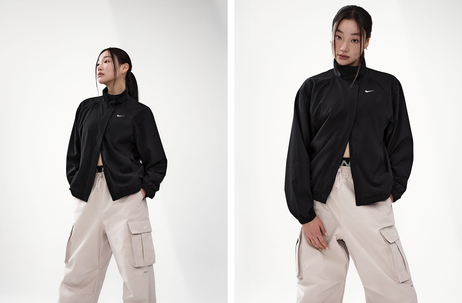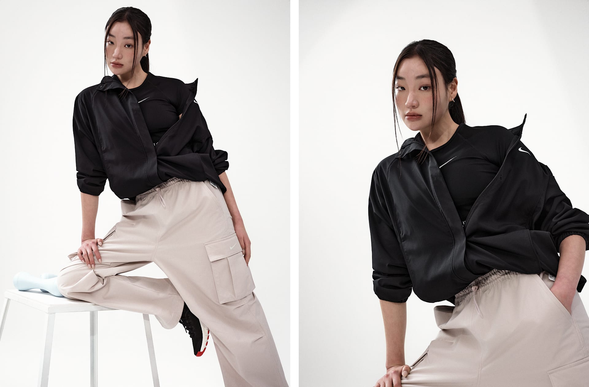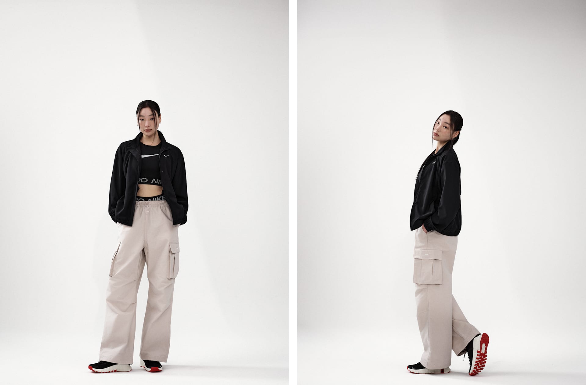 여자 모델 키 : 173cm 착용 사이즈 : S 착용 제품 : FJ7127-006, HV1967-667