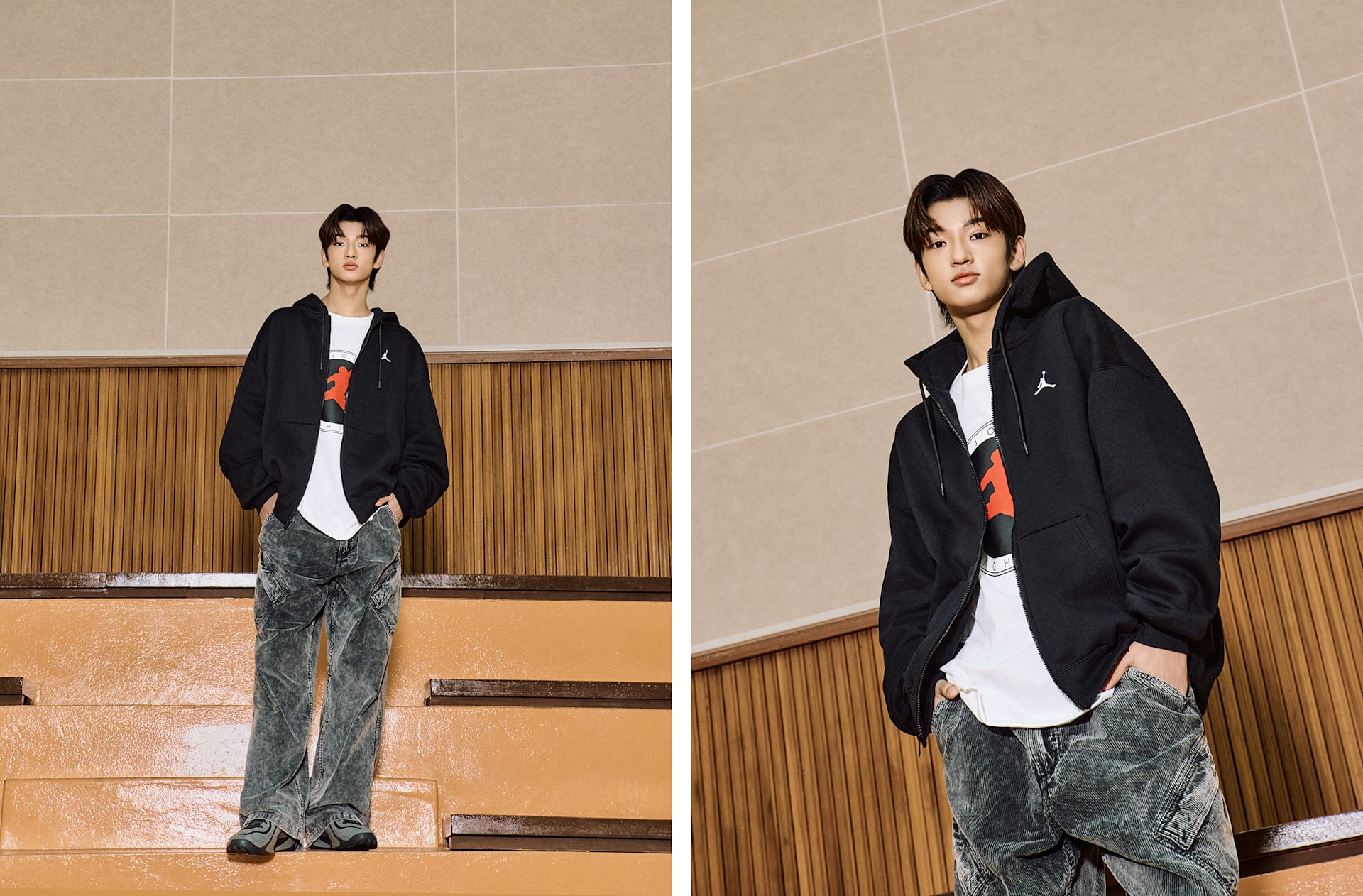 - 추가 수납공간을 제공하는 다이아몬드 형태의 카고 포켓이 시그니처 조던 스타일 연출