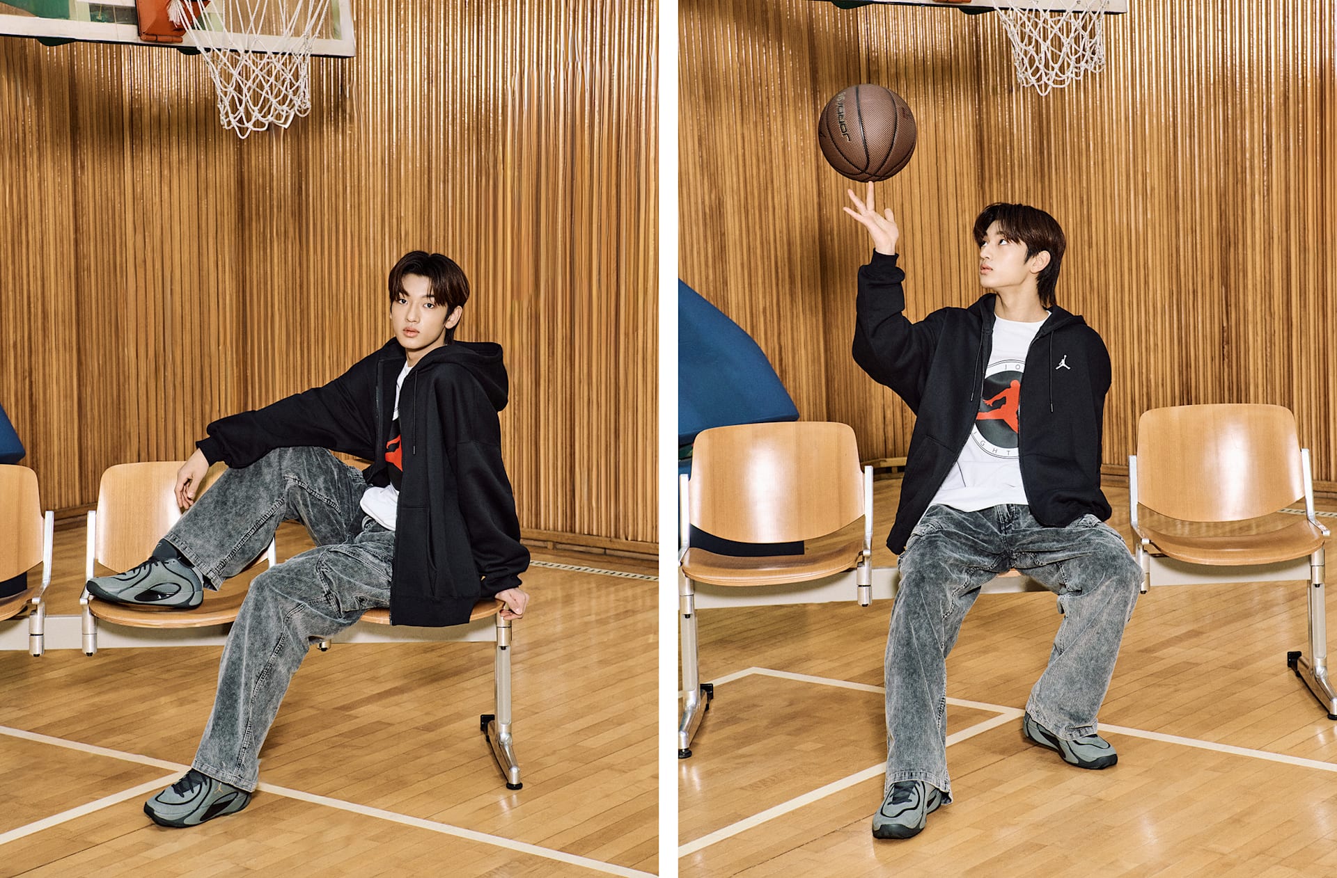 남자 모델 키 : 175cm 착용 사이즈 : L 착용 제품 : IF3010-100, HQ4613-002