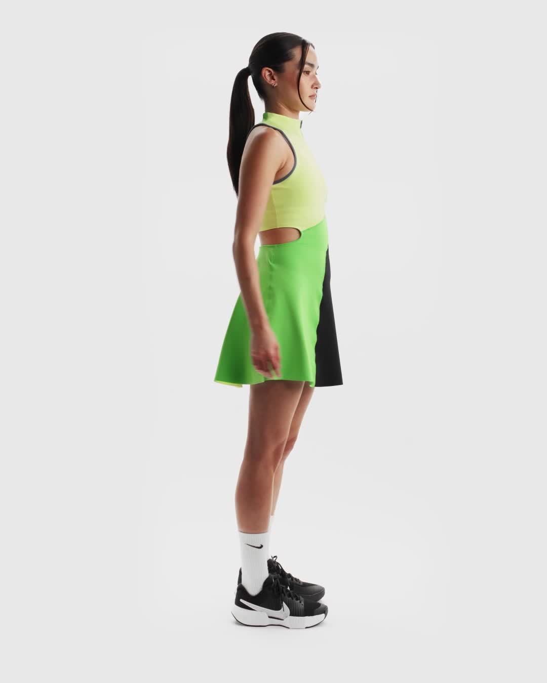 서핑에서 영감을 받은 신축성 있는 테니스 드레스로 다음 경기에서 모두의 눈길을 사로잡아 보세요. 매우 매끄러운 땀 발산 드라이 핏 소재는 호주의 해안에서 종종 보이는 웻슈트에서 영감을 받았죠. 호주의 '해피 슬램'을기념하는 디자인이기도 합니다. 지퍼를 올리고 다음 세트를 준비하세요!