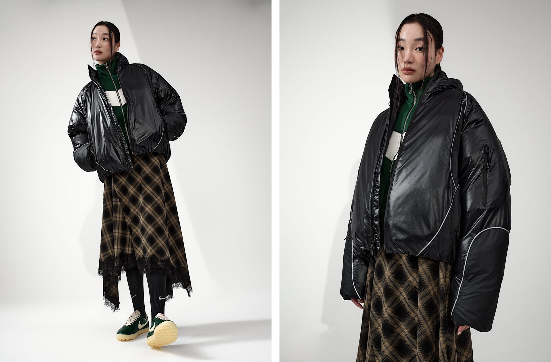 프리미엄 보온성을 기술적으로 업그레이드했습니다. 솜털 충전재와 열 조절 기술을 결합해 제작한 발수 재킷으로, 추운 날씨에도 편안함을 선사합니다. 반짝이는 외관과 매트한 내부가 입체감을 더하며, 반사 디자인 파이핑이 룩을 돋보이게 해줍니다.