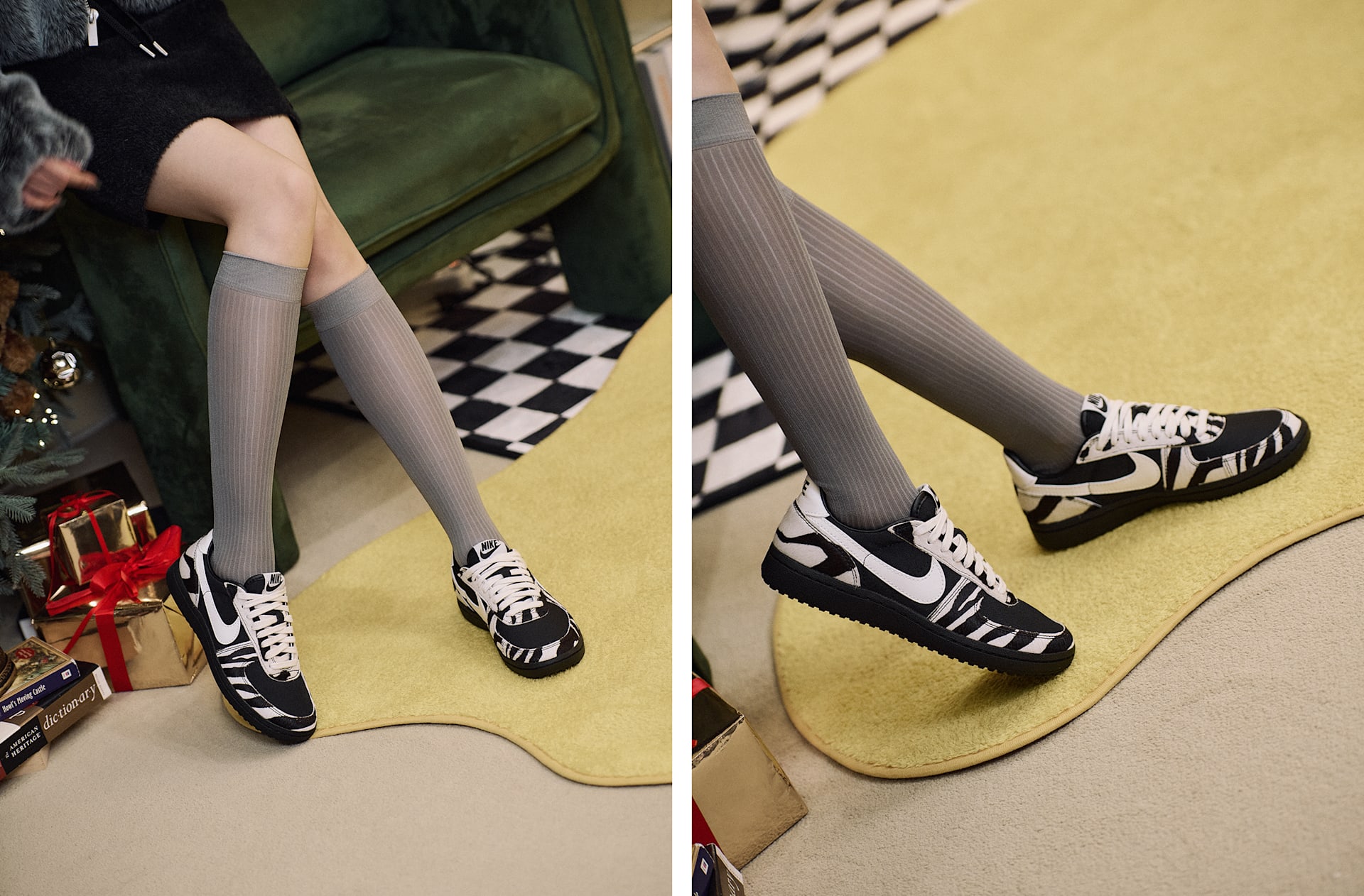 투지 넘치는 미식축구 문화에 뿌리를 둔 필드 제너럴이 돌아와 스니커즈계를 뒤흔듭니다. 캔버스와 애니멀 프린트 헤어 소재, 돌기 형태의 와플 밑창이 어우러져 신선한 느낌으로 빈티지 그리드아이언 룩을 연출한 버전입니다.