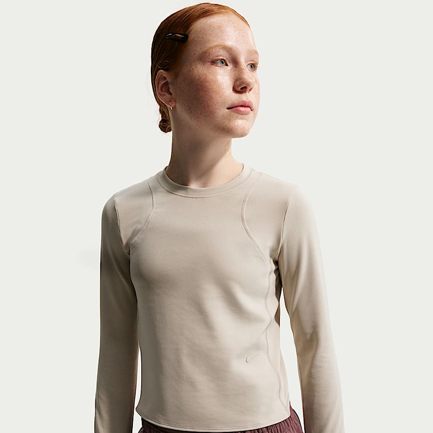나이키 MAVN 여아 드라이 핏 리브드 긴팔 탑 - 화이트/화이트/화이트