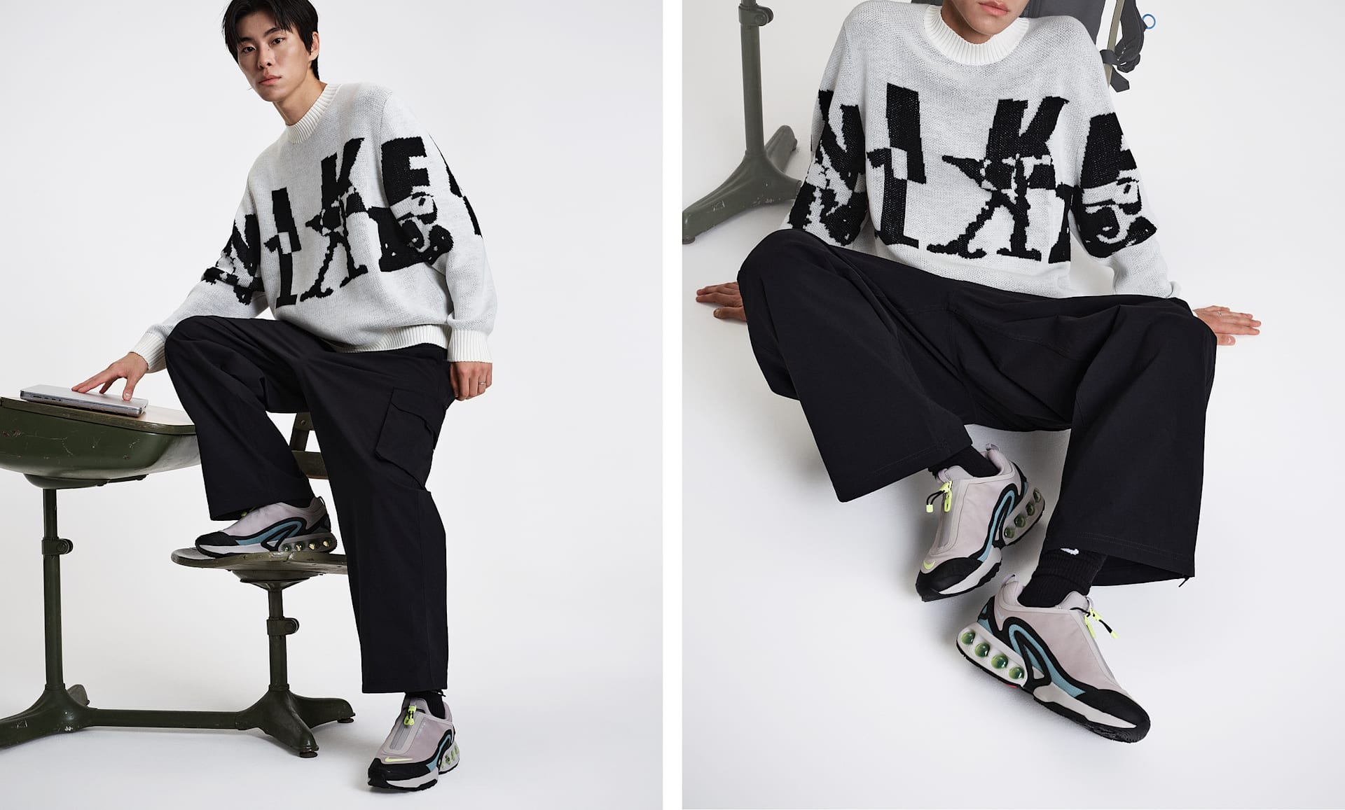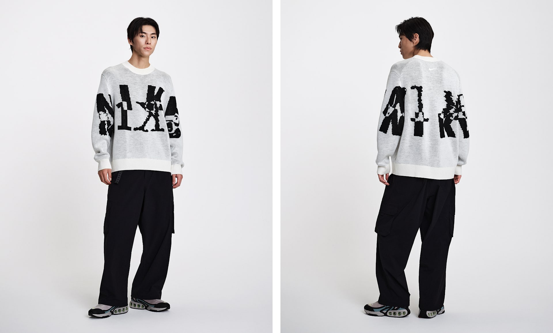 남자 모델 키 : 180cm 착용 사이즈 : XL 착용 제품 : 파리 생제르맹 2024/25 스타디움 어웨이, 나이키 에어맥스 플러스