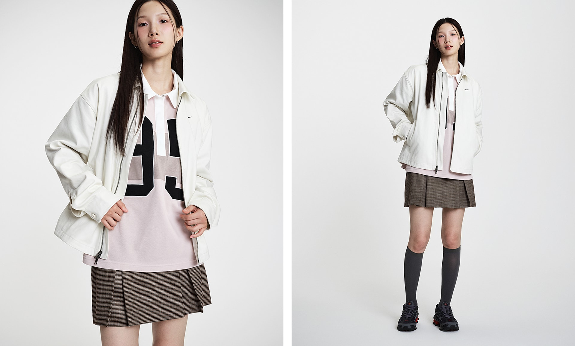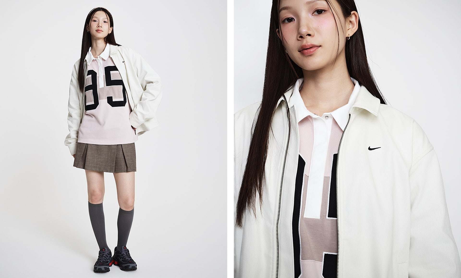 여자 모델 키 : 173cm 착용 사이즈 : S 착용 제품 : HV1329-047, IM5999-084