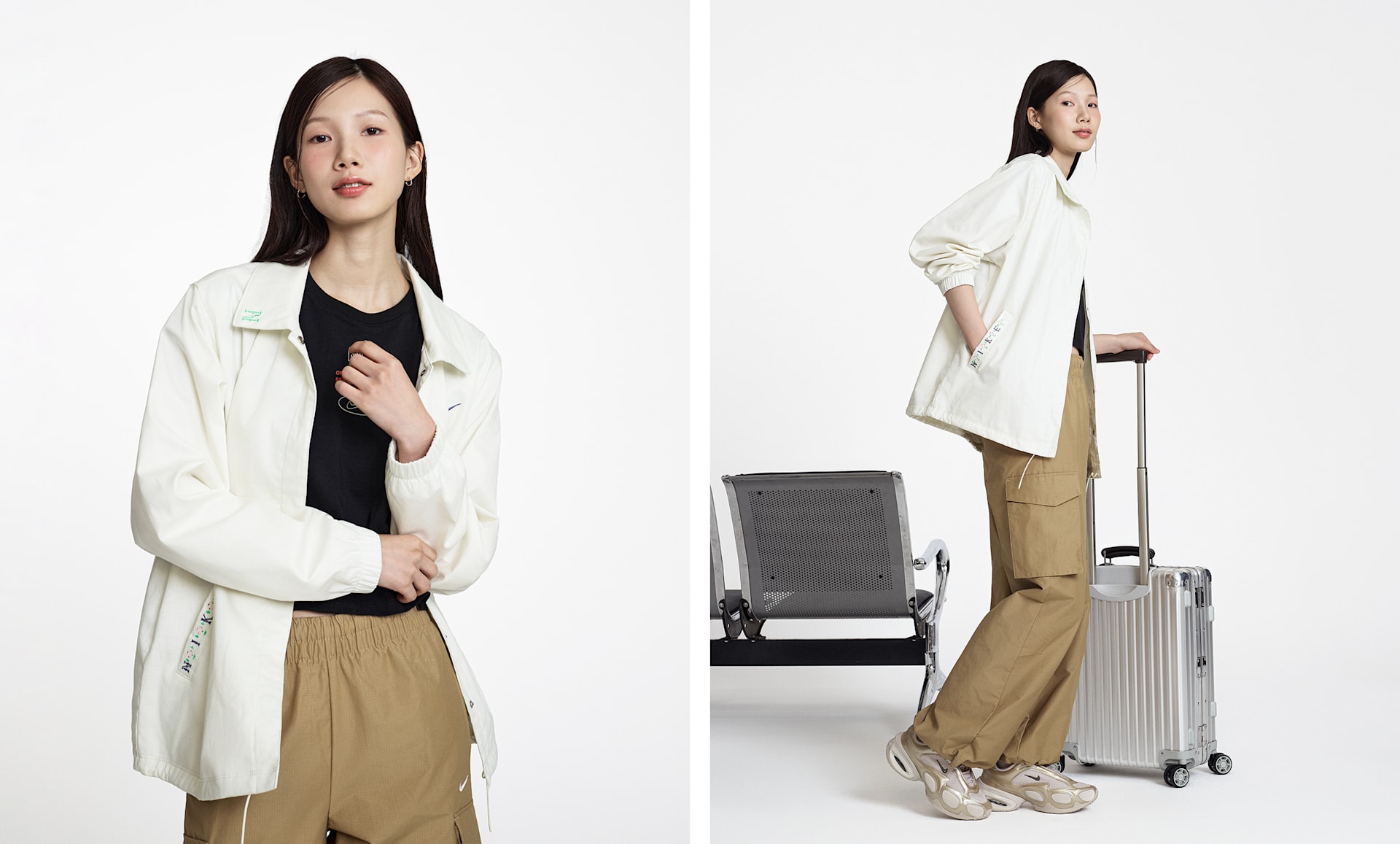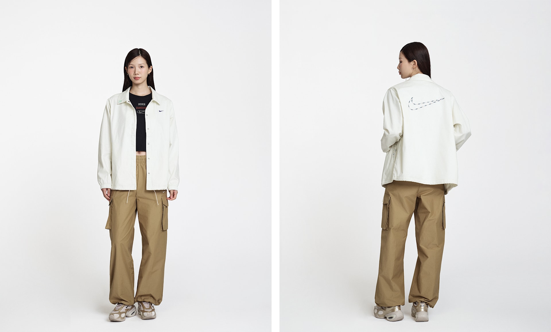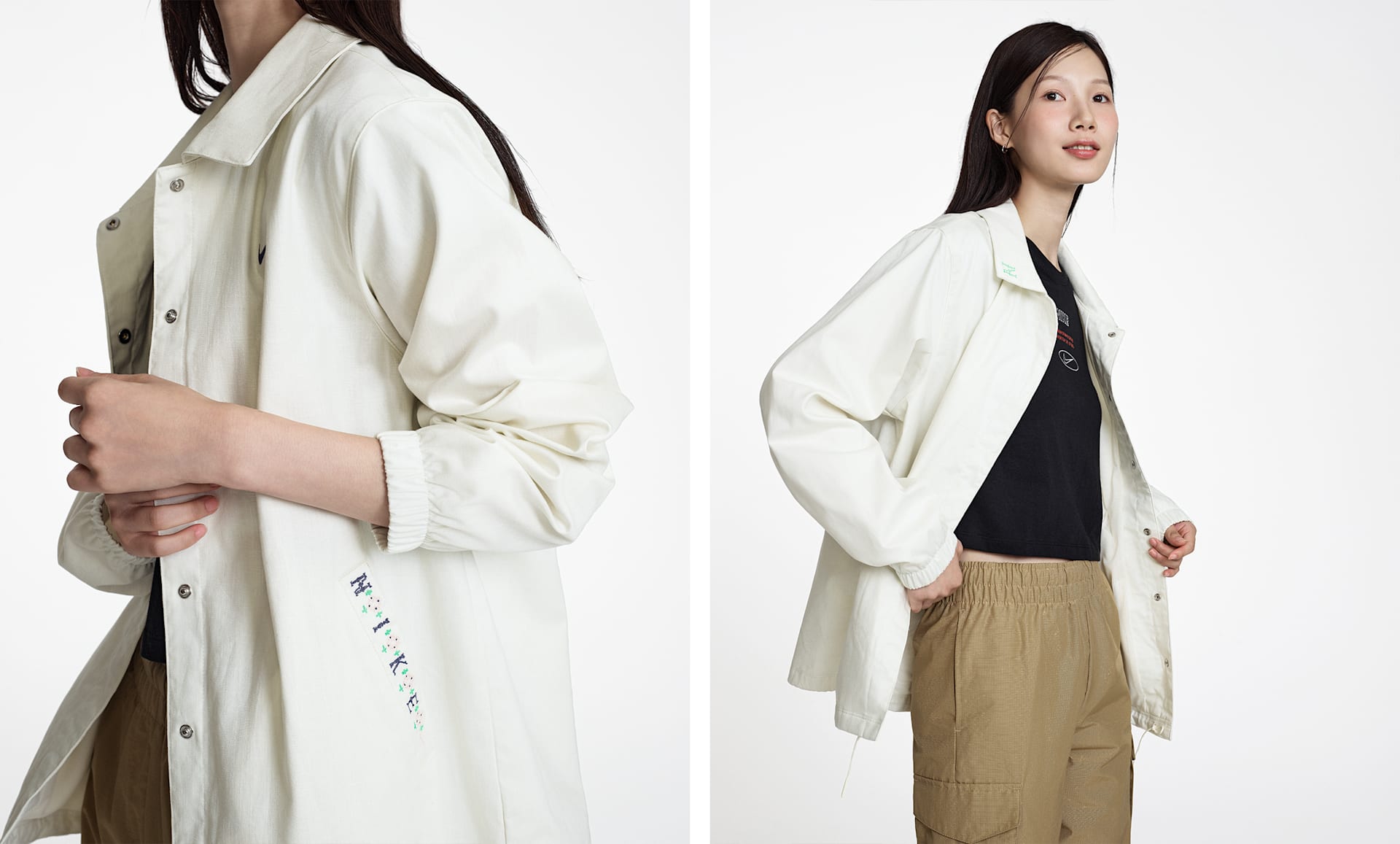 - 전체적으로 적용된 스냅과 밑단의 조임 끈으로 나만의 룩 연출 가능