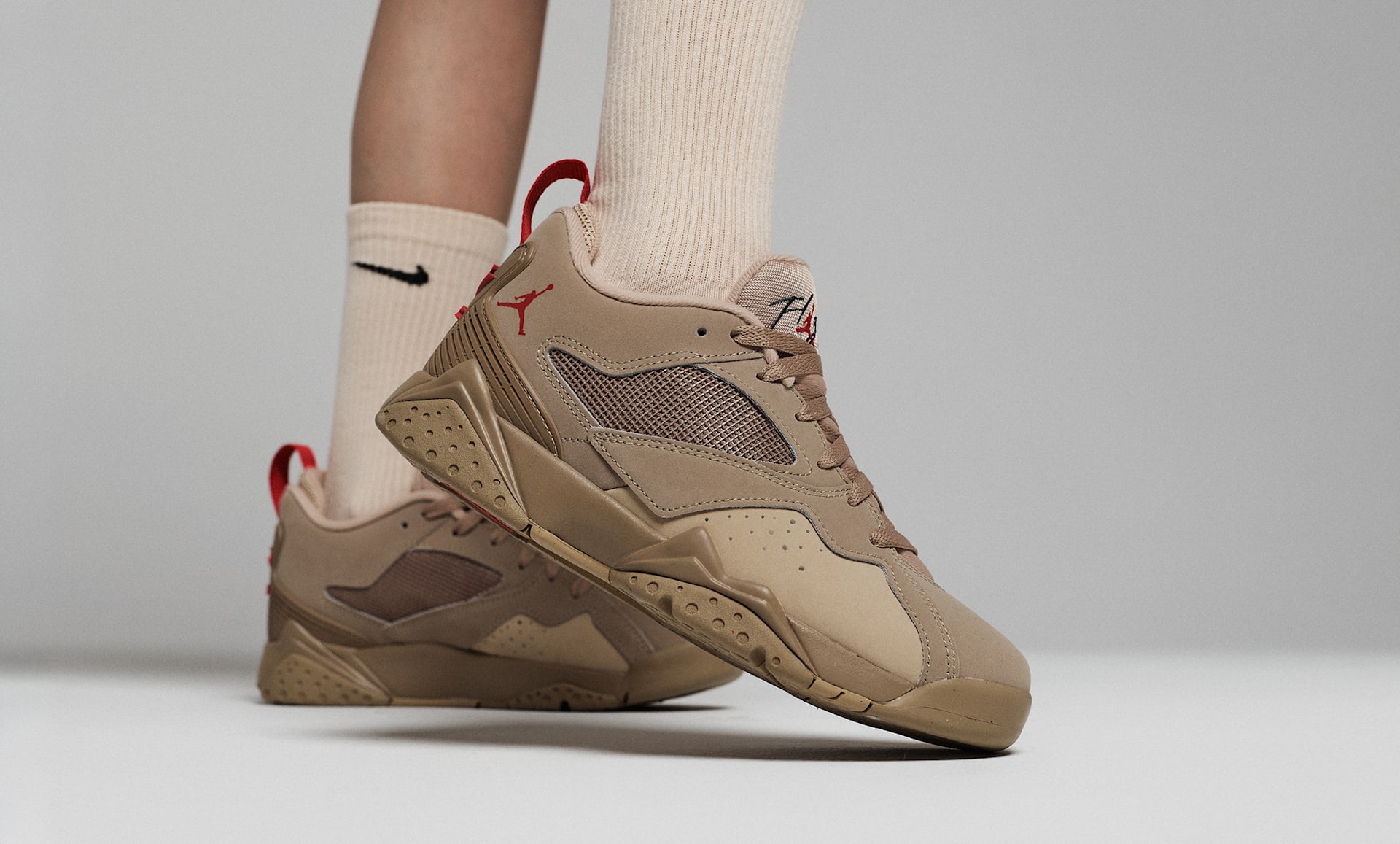 AJ7을 더욱 업그레이드하려면 어떻게 해야 할까요? 로우 탑 실루엣으로 재해석하는 방법이 있죠. 레이어드 갑피와 아이코닉한 중창으로 시작해 오리지널이 완벽한 클래식 아이템으로 탈바꿈했습니다. 또한 직물 소재의 액센트와 패딩 처리된 로우컷 카라를 더해 산뜻하고 모던한 룩을 완성했습니다.