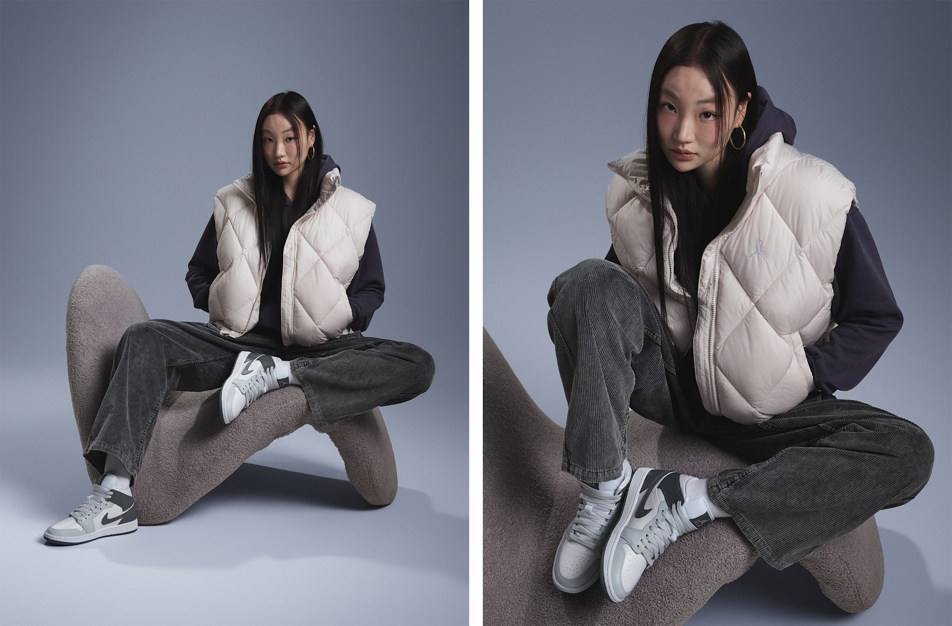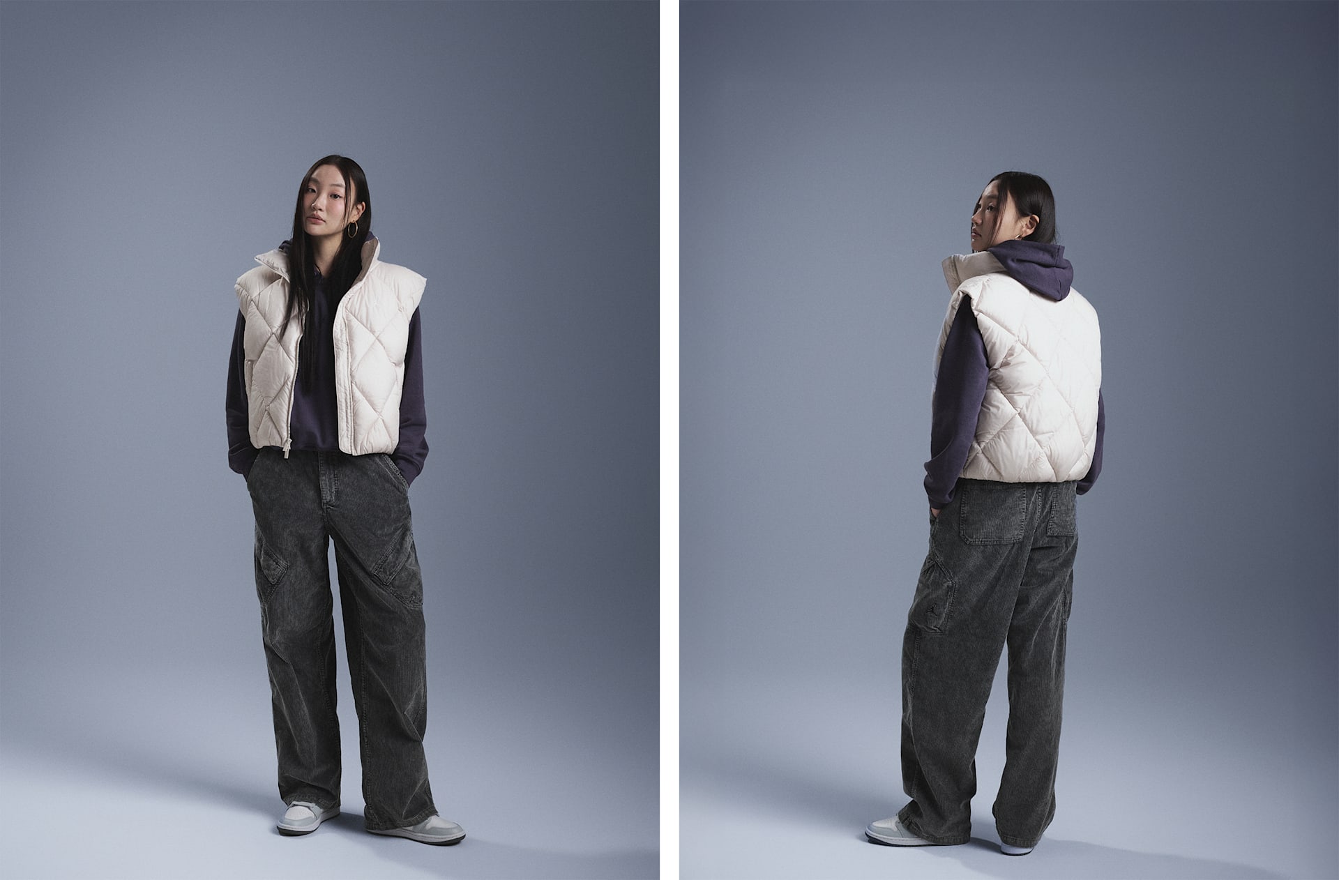 여자 모델 키 : 173cm 착용 사이즈 : S 착용 제품 : HV0414-104, HV0526-010