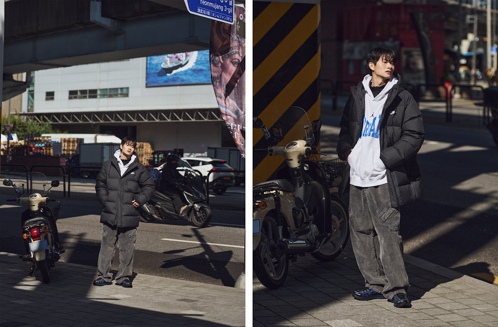 여자 모델 키 : 173cm 착용 사이즈 : S 착용 제품 : HV0414-104, BQ6472-113