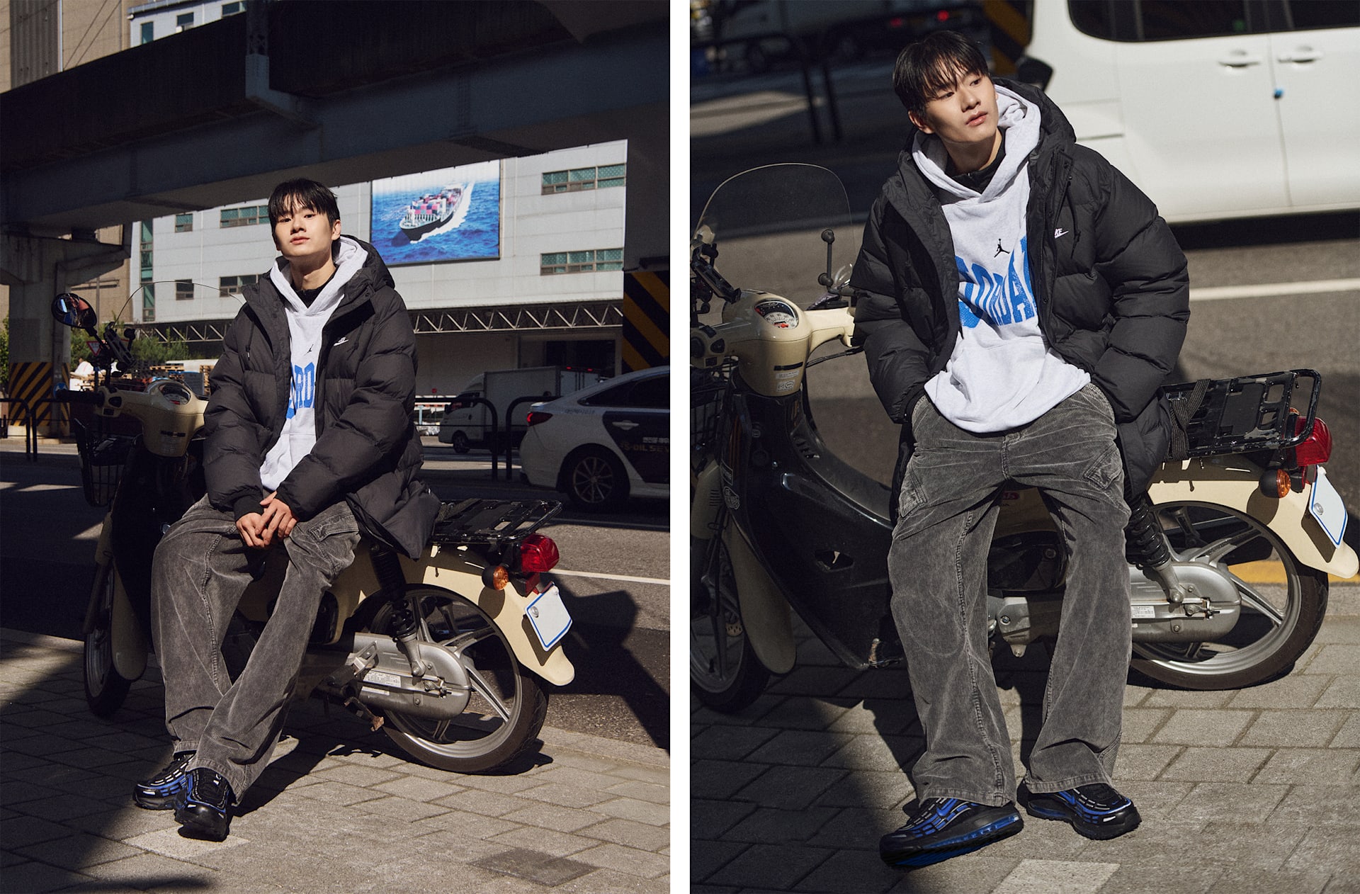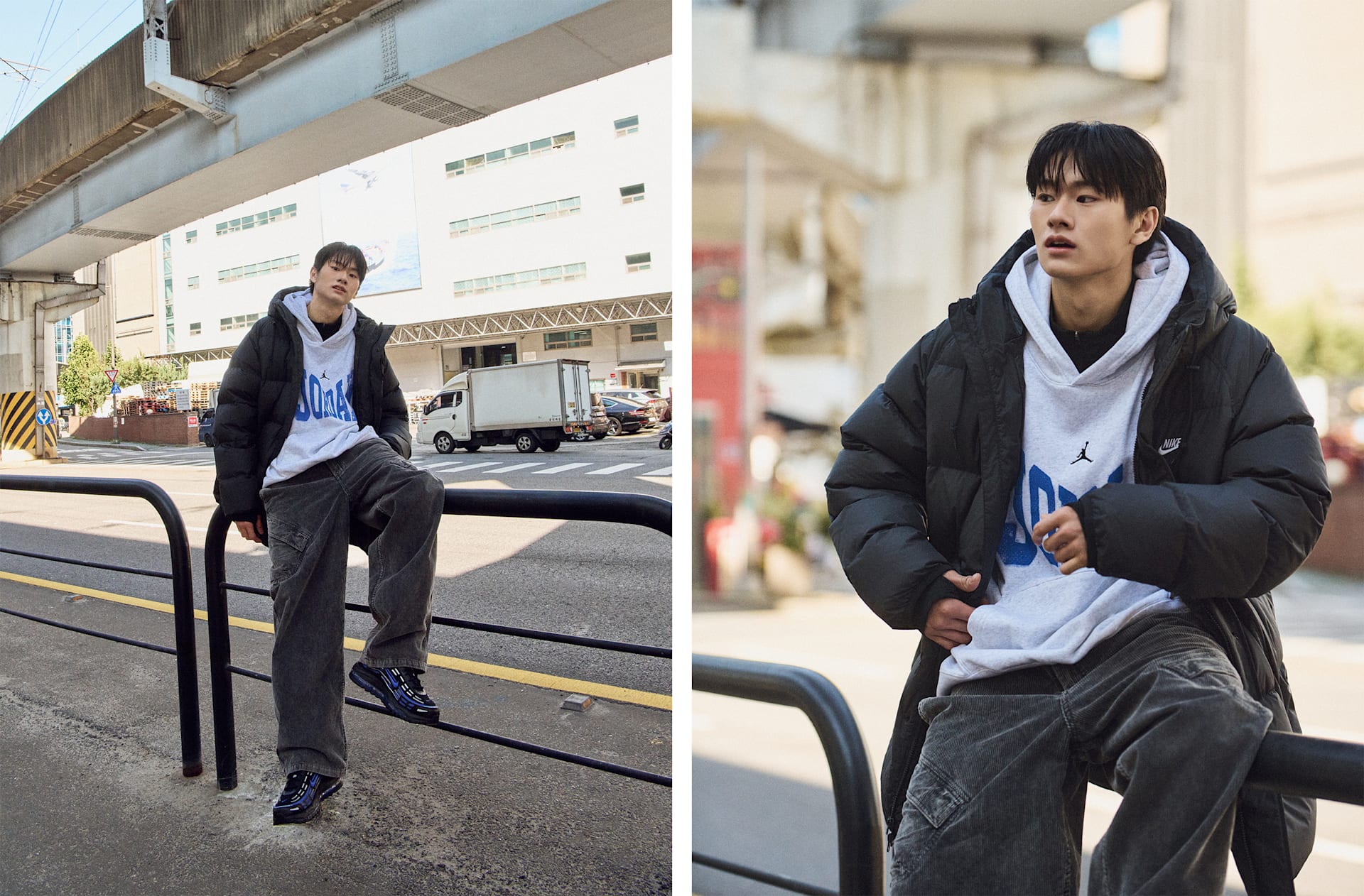 남자 모델 키 : 180cm 착용 사이즈 : L 착용 제품 : HV1870-010, HQ3950-007