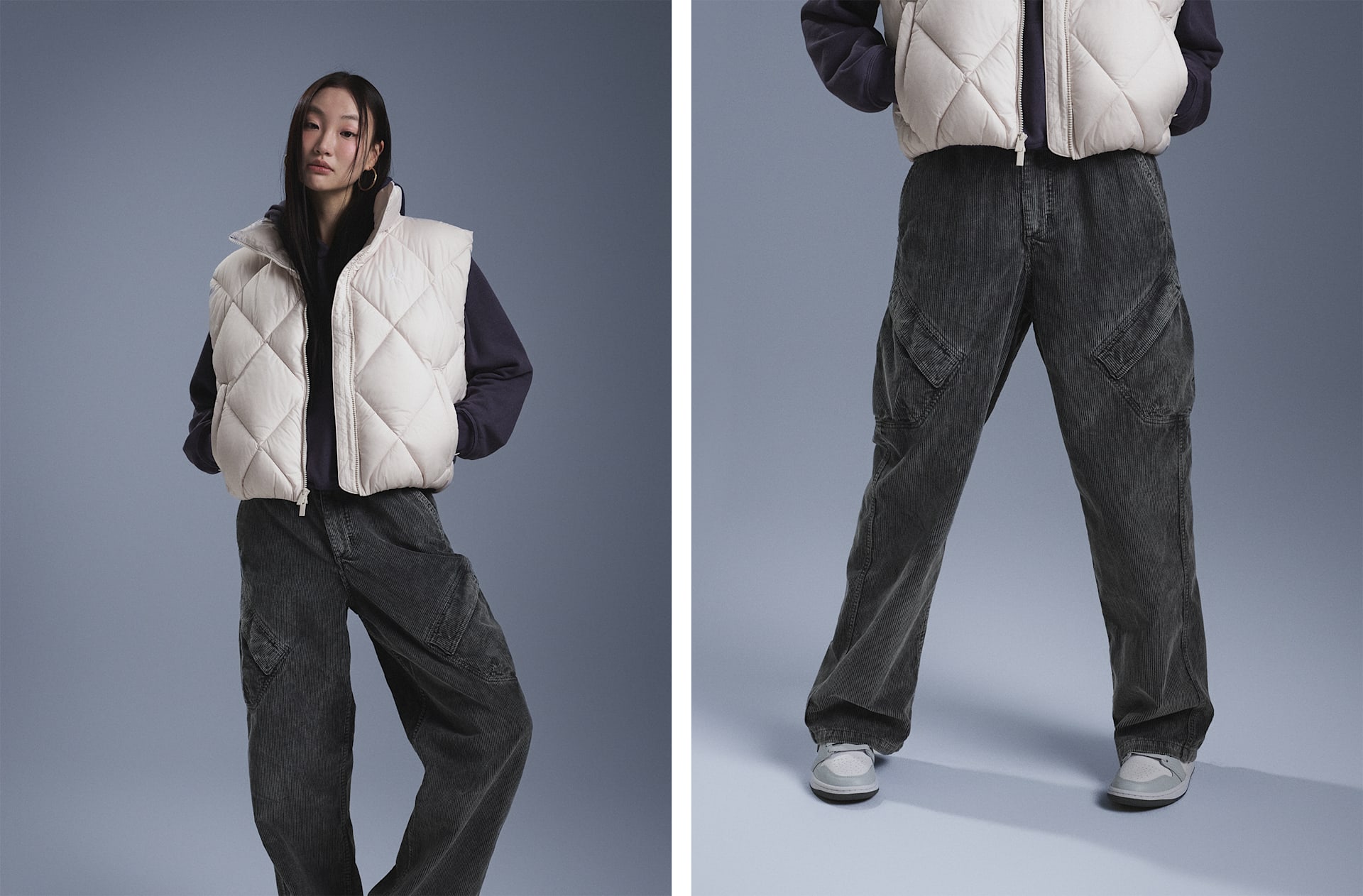 - 추가 수납공간을 제공하는 다이아몬드 형태의 카고 포켓이 시그니처 조던 스타일 연출