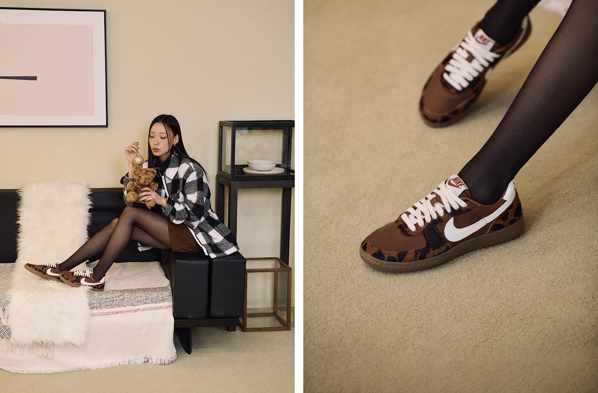 투지 넘치는 미식축구 문화에 뿌리를 둔 필드 제너럴이 돌아와 스니커즈계를 뒤흔듭니다. 캔버스와 애니멀 프린트 헤어 소재, 돌기 형태의 와플 밑창이 어우러져 신선한 느낌으로 빈티지 그리드아이언 룩을 연출한 버전입니다.
