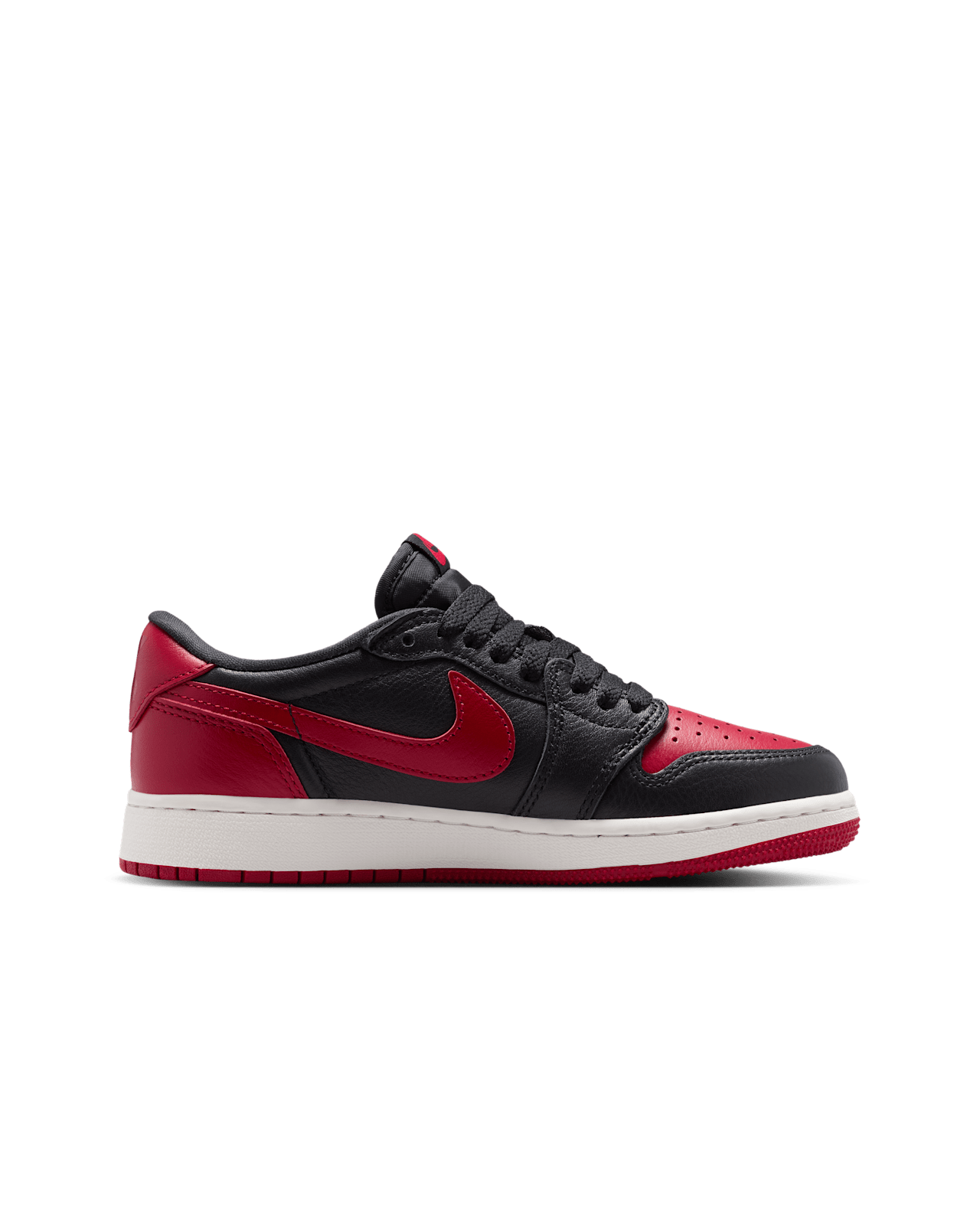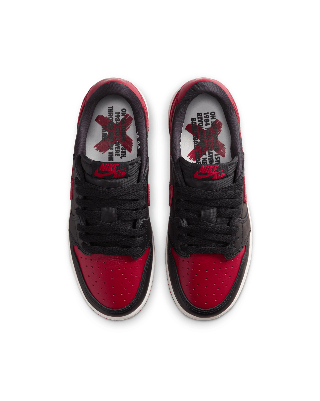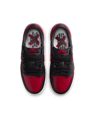 This one's for the disruptors. When MJ stepped onto the court in the now legendary "Banned" colorway, he knew he was changing the game. "Banned" reemerges on this AJ1 Low to remind players that when it comes to style, some rules were made to be broken. The full-grain leather upper is rendered in Varsity Red and black, with the iconic X branding returning on the heel and special edition sockliners nodding to the 1984 story. Special "Banned" packaging keeps the legend going.