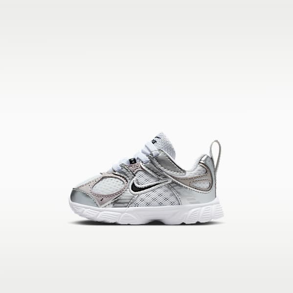 Viele der Schuhe von Nike für Kleinkinder haben elastische Schnürsenkel mit Klettverschlussriemen, die das An- und Ausziehen erleichtern.