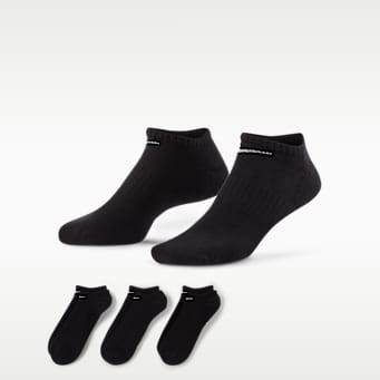 Los calcetines de perfil bajo, también conocidos como calcetines invisibles, cubren el pie, pero normalmente no llegan al tobillo. Si bien es posible que no protejan contra el roce en el talón del calzado tanto como los estilos al tobillo, algunos niños pueden disfrutar la sensación de una tela delgada en los pies o el look de un calcetín oculto para combinar con su calzado deportivo favorito. Nike ofrece calcetines invisibles para niños en paquetes de seis.