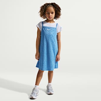 La ropa Nike Sportswear está diseñada para la vida cotidiana y el movimiento. Estos vestidos son ideales para ir a la escuela, pasar el rato con amigos o salir de excursión con la familia. Muchos estilos tienen bolsillos para guardar artículos imprescindibles pequeños y vienen en distintos estampados y telas (tie-dye, velour, tul) para que los niños muestren sus personalidades.