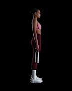 This sports bra is very comfortable however those with a small cup size should maybe size down. Raising arms can cause band to raise up. I would wear this for an activity that my upper body wouldn’t move a lot.