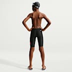 Nada más rápido con el traje de baño tipo jammer diseñado para nadadores que persiguen el reloj. La tela con forro en la parte delantera es resistente al cloro para una mayor durabilidad. Además, las costuras planas ayudan a reducir el roce, para que puedas concentrarte en alcanzar tu mejor marca personal.