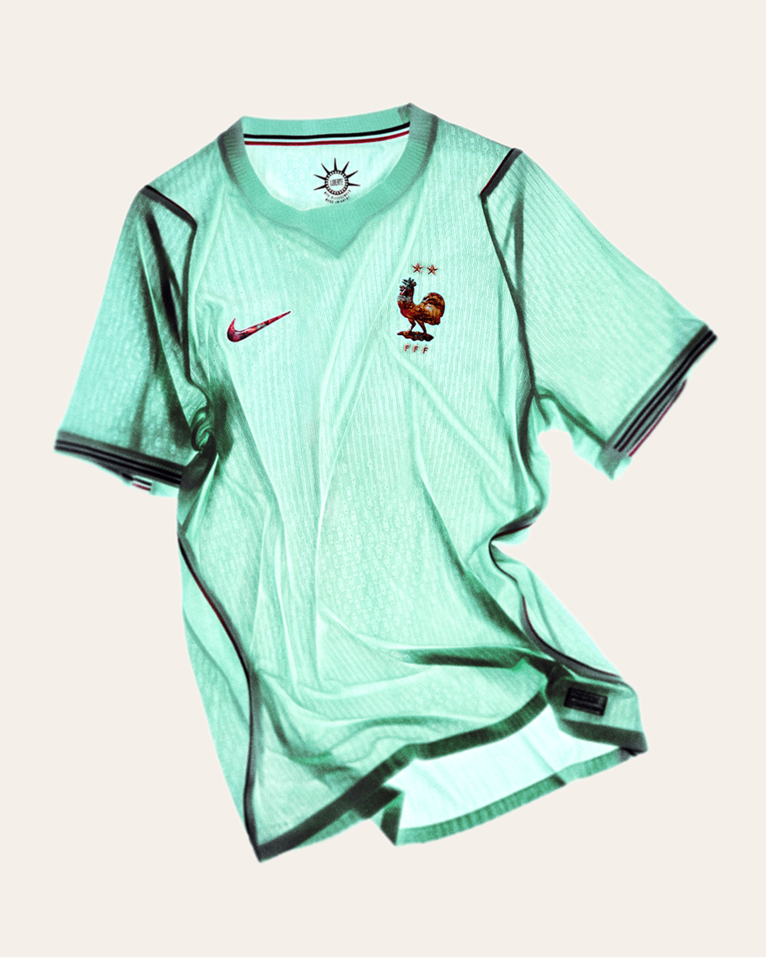 Este jersey rinde homenaje al mayor regalo que Francia le hizo a Estados Unidos: la Estatua de la Libertad. En honor a este símbolo eterno de esperanza y oportunidad, este uniforme se inspira en cómo el color de la estatua ha cambiado con el paso del tiempo.
