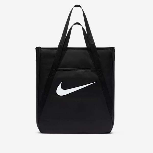 These tote bags are built for a big haul. Pick them up using sturdy dual handles or throw them over your shoulder with cross-body straps. And these totes never lack style, with iconic Swoosh elements, metal hardware and design details like oversized zip pulls.