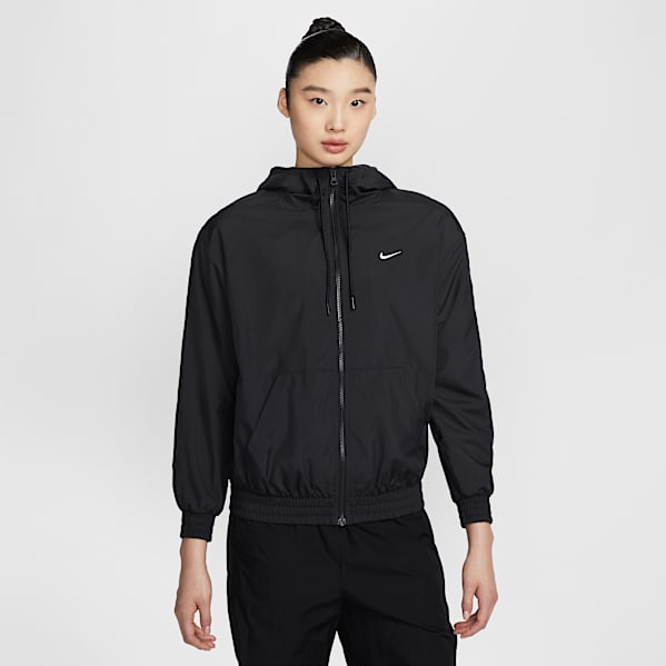 - Nike Sportswear Classic Wovens: this women's jacket has dropped shoulders, an oversized fit and a hood in addition to UV protection.