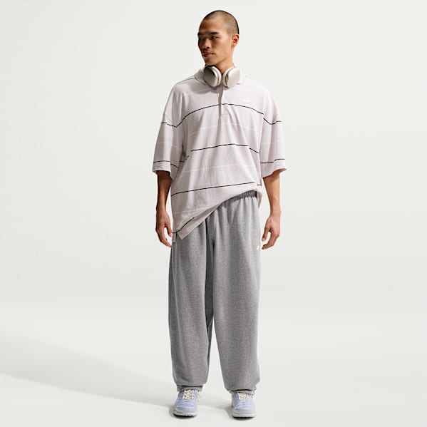 When a day off work or school rolls around, embrace chill vibes by keeping your choice of trousers comfy. A pair of fleece joggers paired with a structured chore coat and retro-tinged Air Pegasus sneaker is a combination that is just the right amount of stylish, while still leaning into the relaxed mood of a lazy day. This is how to style grey tracksuit bottoms in an unexpected-yet-effortless way.