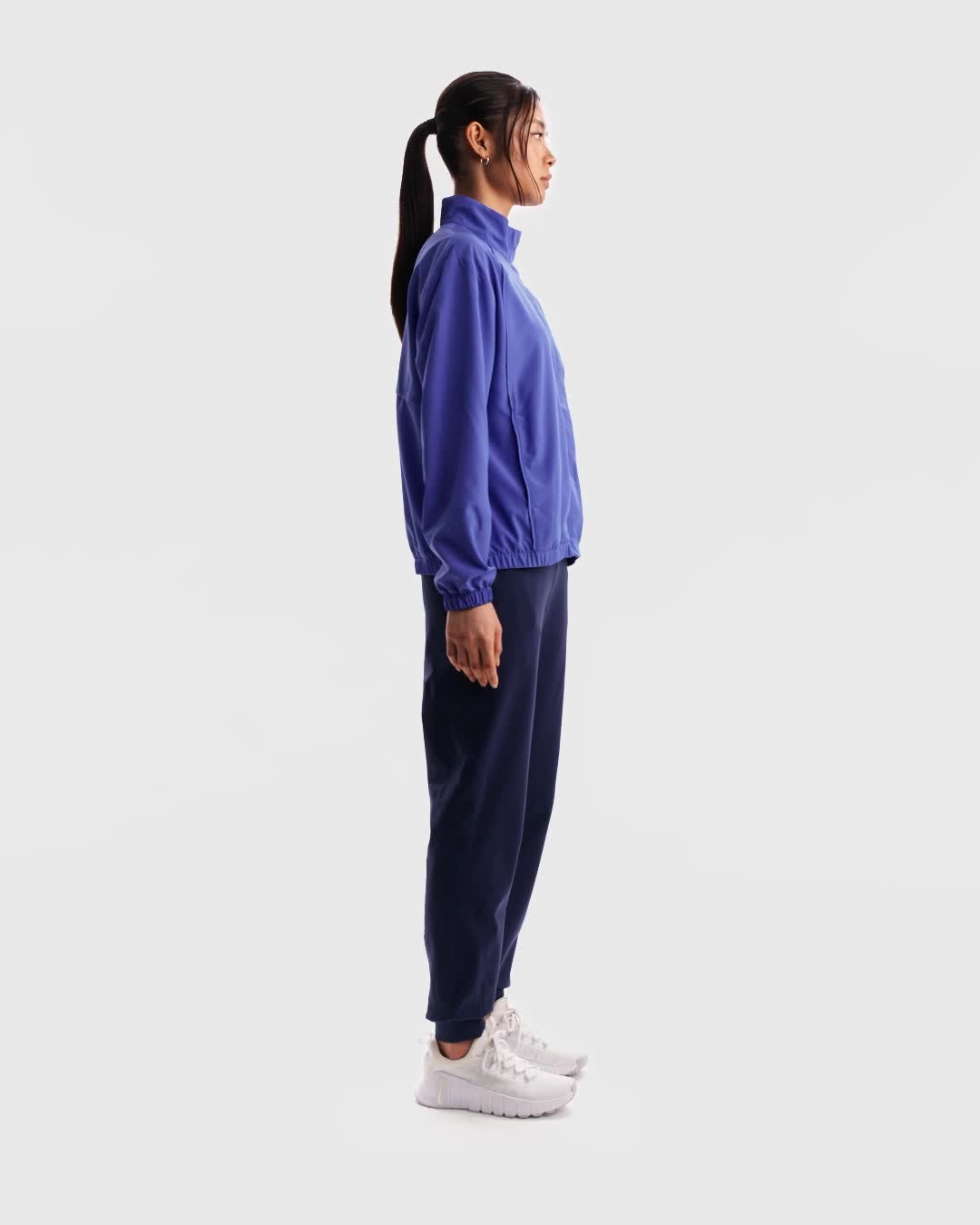 Nike One works for it all. Lightweight and breathable, this roomy jacket has a hidden snap closure plus a back mesh underlay for extra comfort through every activity.