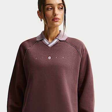 Whether in full-on lounge mode or looking for a layer to top off a casual outfit, a Nike oversize sweatshirt can provide warmth and comfort. Shop for a roomy quarter-zip for mild-weather workouts or a heat-retaining crew neck with advanced engineering for colder days.