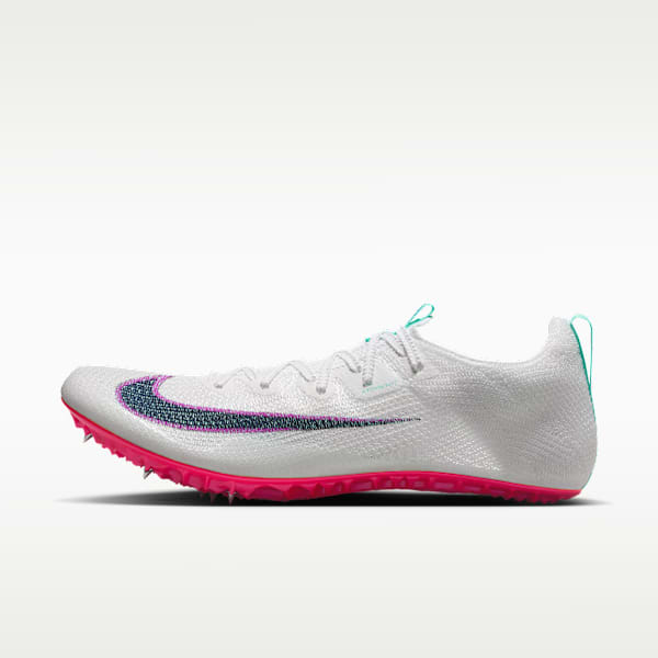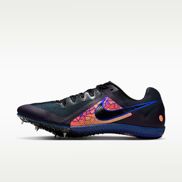 Nike track spikes for jumpers are studded with metal spikes that grip the surface of the runway. They're made with a fairly stiff plate on the bottom that creates a stable base for when jumpers take off but have cushioning in the midsole to absorb the impact of the jumps.
