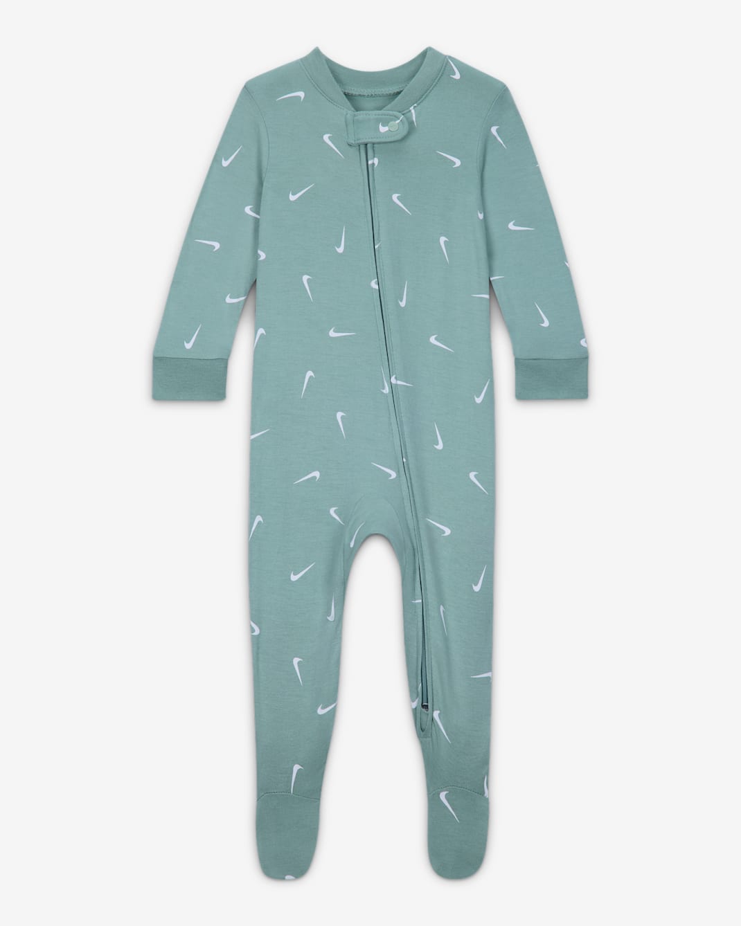 Easily dress smaller future athletes in this coverall, made of stretchy jersey knit fabric that feels gentle and soft on baby's precious skin. The two-way zip closure makes changing, dressing, or layering over a bodysuit easy, while the foldover mittens on the sleeves and the footed bottom help keep tiny fingers and toes toasty.