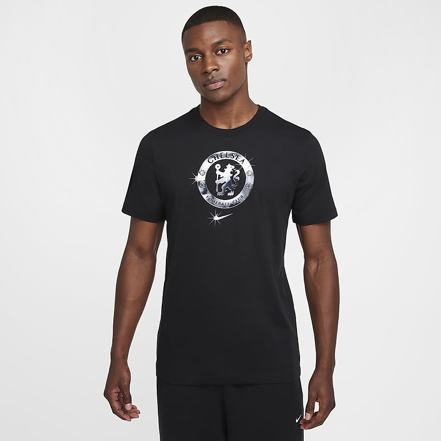 - Metallic-effect NFL shield at V-neck