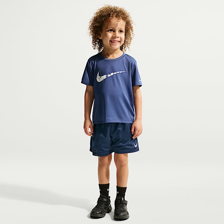 Your little athlete can play in pro style in these performance shorts. They're made of stretch poly knit fabric containing recycled fibers and enhanced with quick-drying, moisture-wicking Dri-FIT technology to help them stay cool and dry while they move. Top these off with a comfy elastic waistband and your kiddo gets a sport essential tailored for movement.