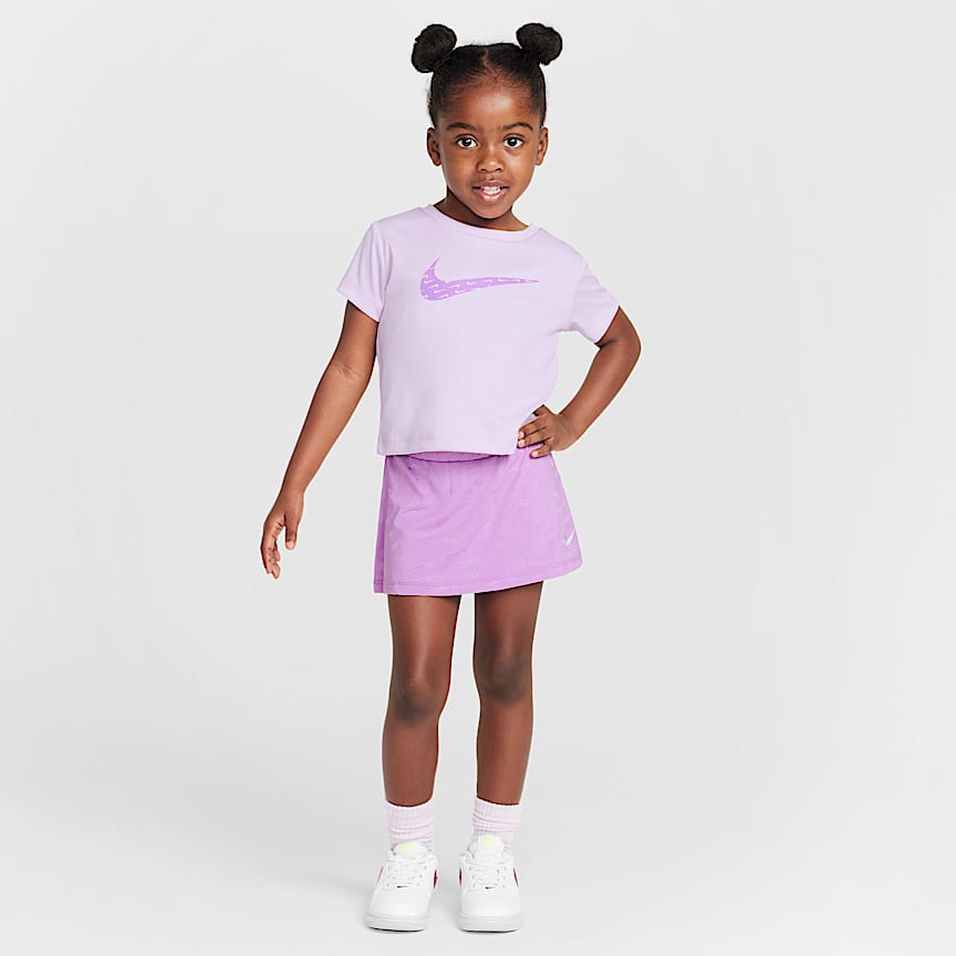 This 2-piece set is an easy way to dress little ones for fun. The hoodie is made of soft fleece for lightweight warmth, has slightly dropped shoulders create a relaxed fit, the full-zip closure makes layering easy and the matching tapered pants have a stretchy waistband for a comfy fit they can play freely in. Pair with any Nike tank or tee for a completed look.