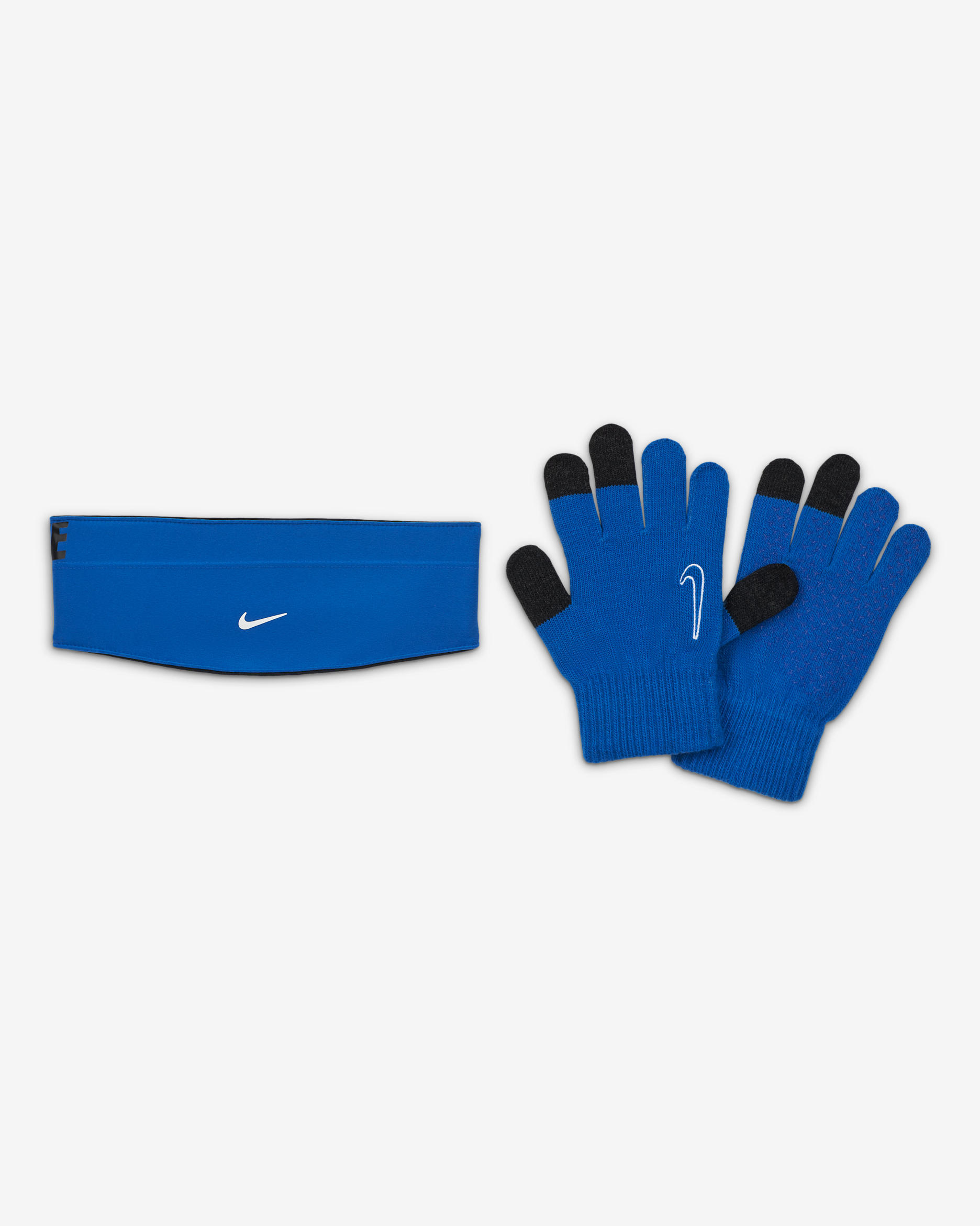 Don't let the cold weather stop you in the Nike HyperStorm Set. The headband features sweat-wicking fleece in a wide, contoured design that offers coverage for your ears to help keep you dry and warm. The gloves have a silicone grip pattern on the palms and fingers, as well as touchscreen-compatible thumbs and fingers so you can access your devices on the go.