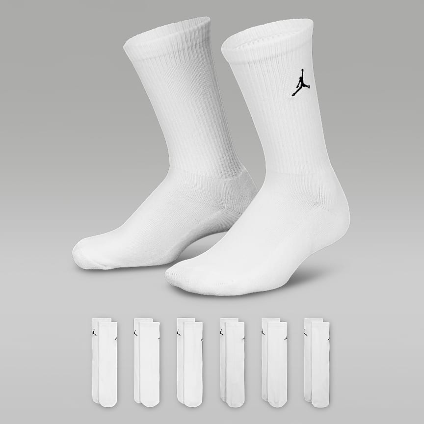 Made of poly knit yarns, these soft, stretchy socks complement your Jordans while providing great support. They feature a ribbed arch support band that helps with balance and to prevent or relieve pain, while comfy cushioning on the bottom, heel, and toe help absorb impact during every run, jump and bound.