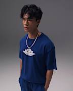 This is currently my favorite t-shirt. I love the blue color and it obviously matches with my Rare Air Jordan 3s and 4s. I really enjoy the distressed look of the tee and the fit is absolutely perfect. Wish I could buy the black/red one too but sadly it's sold out in my size. If you like slightly distressed stuff I highly recommend.