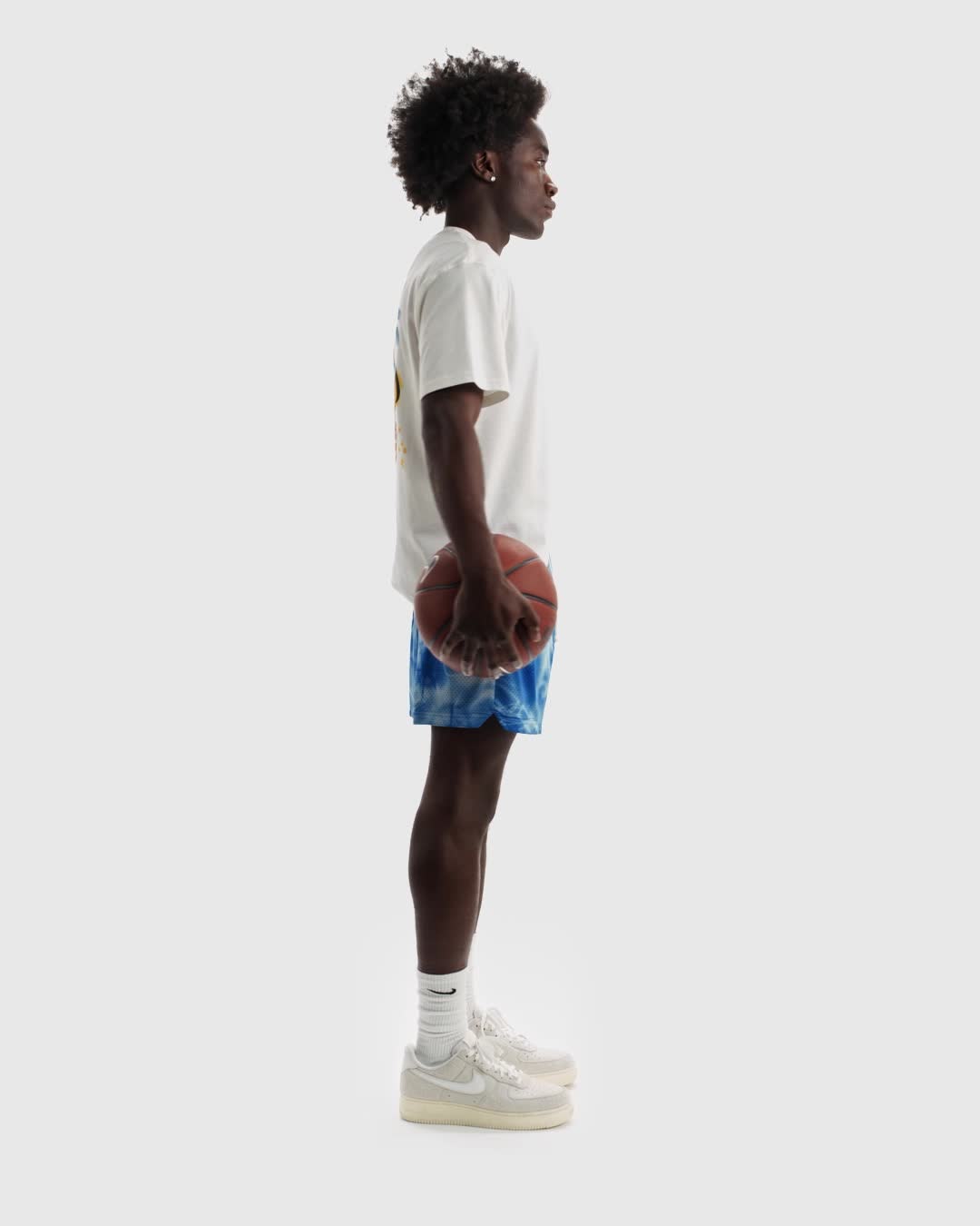 When it comes to hoop capitals of the world, don't sleep on the City of Angels. This graffiti-sprayed printed t-shirt celebrates L.A.'s thriving hoop scene, with a little help from the heavens above.